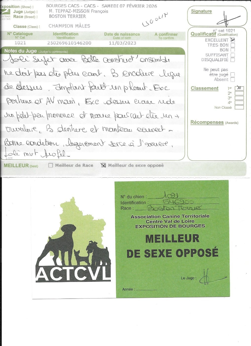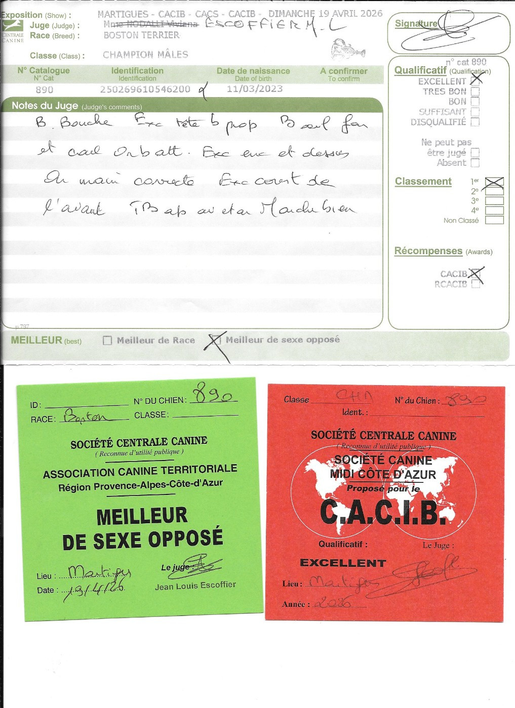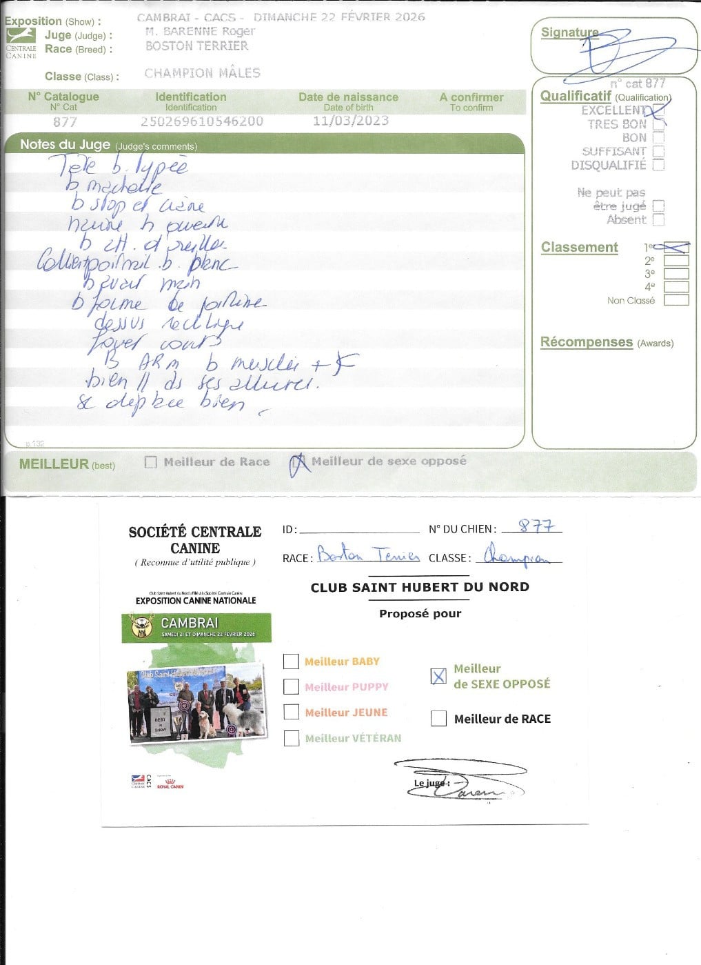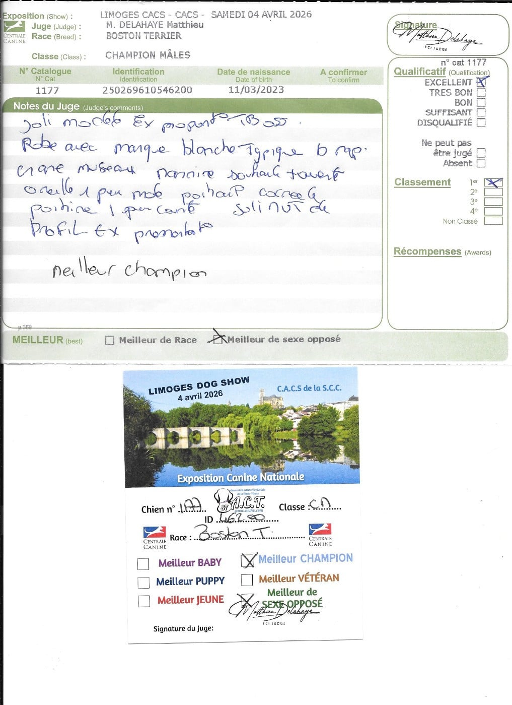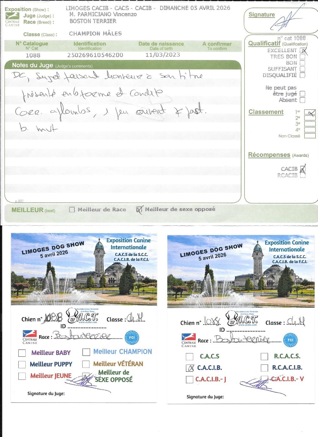 - 1° EXC CACIB BOB qualifiée CRUFTS 2027