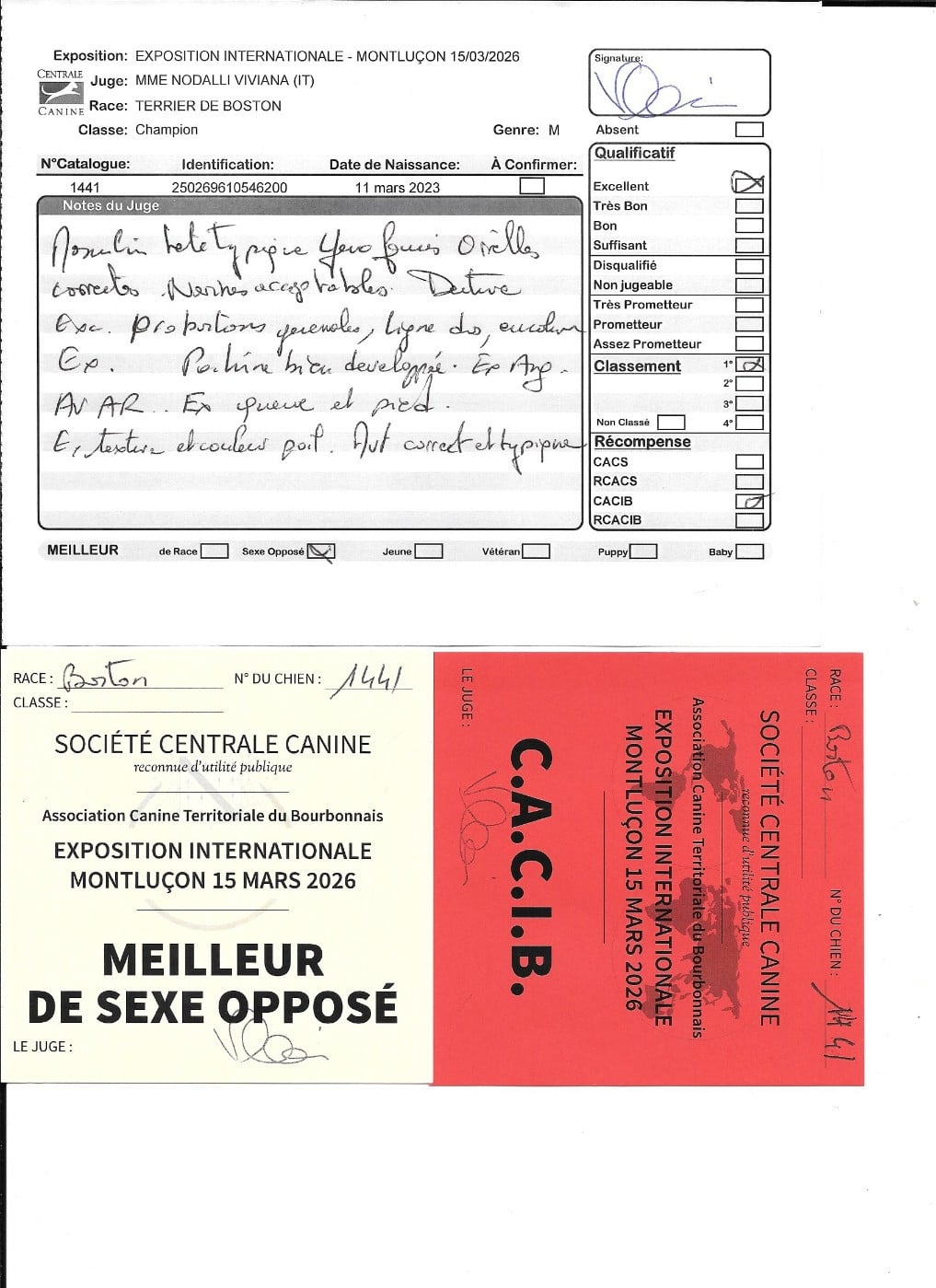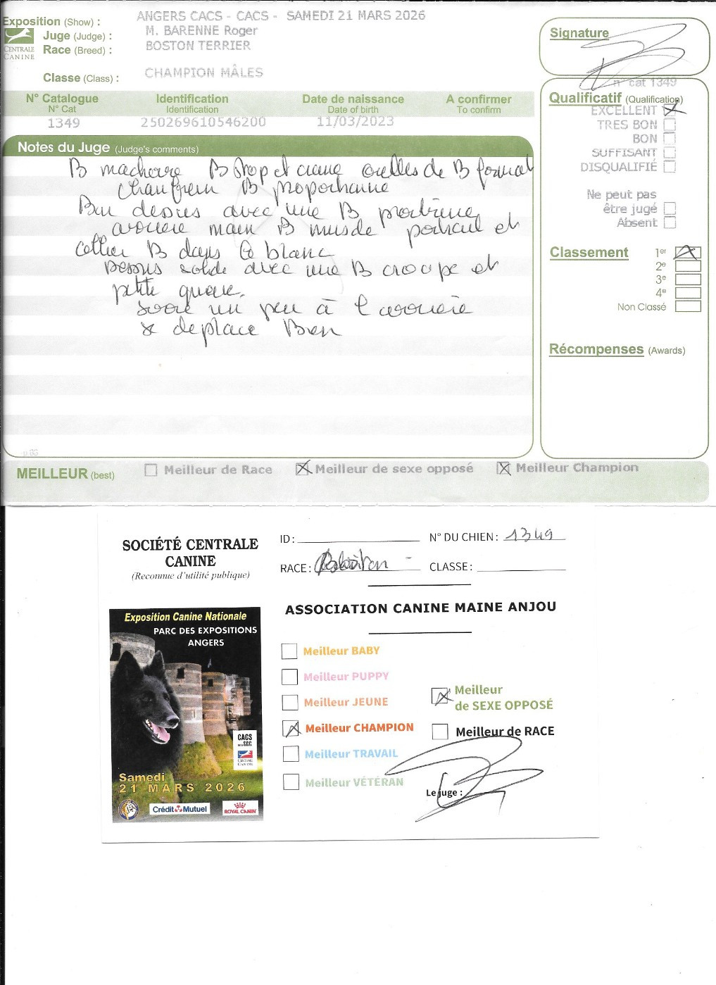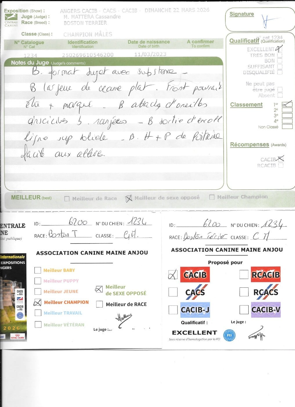 - 1° EXC CACS jeune BOB jeune Meilleur de RACE