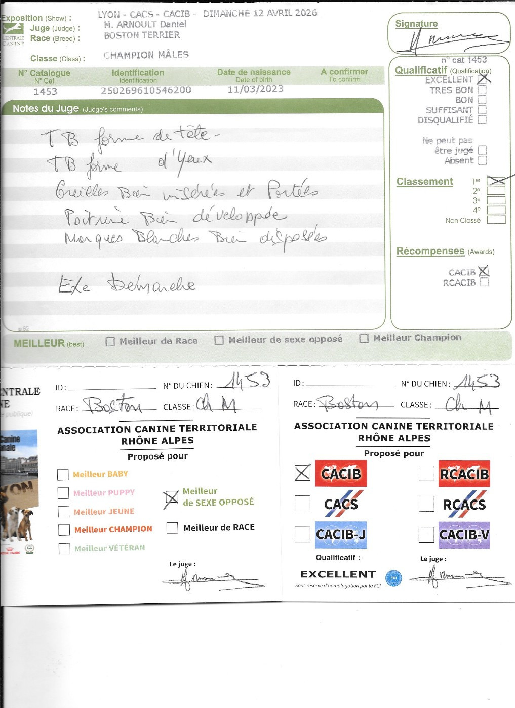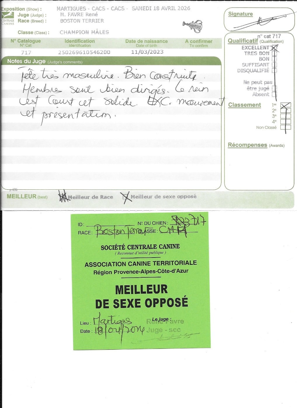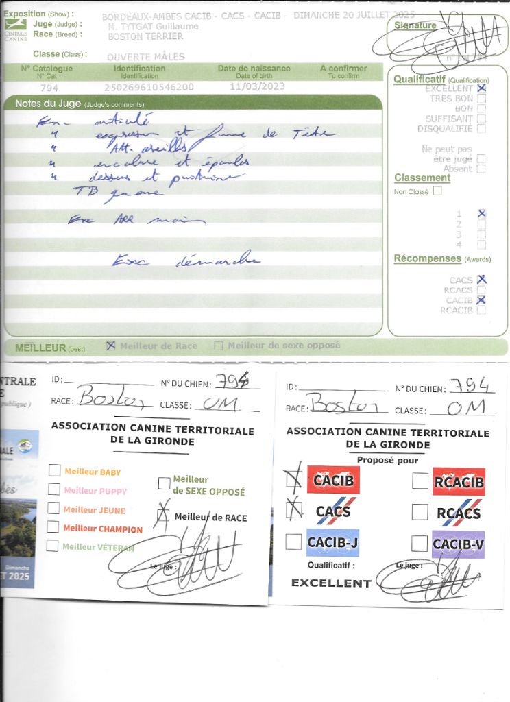 - 1° EXC CACS jeune BOB jeune Meilleur de RACE