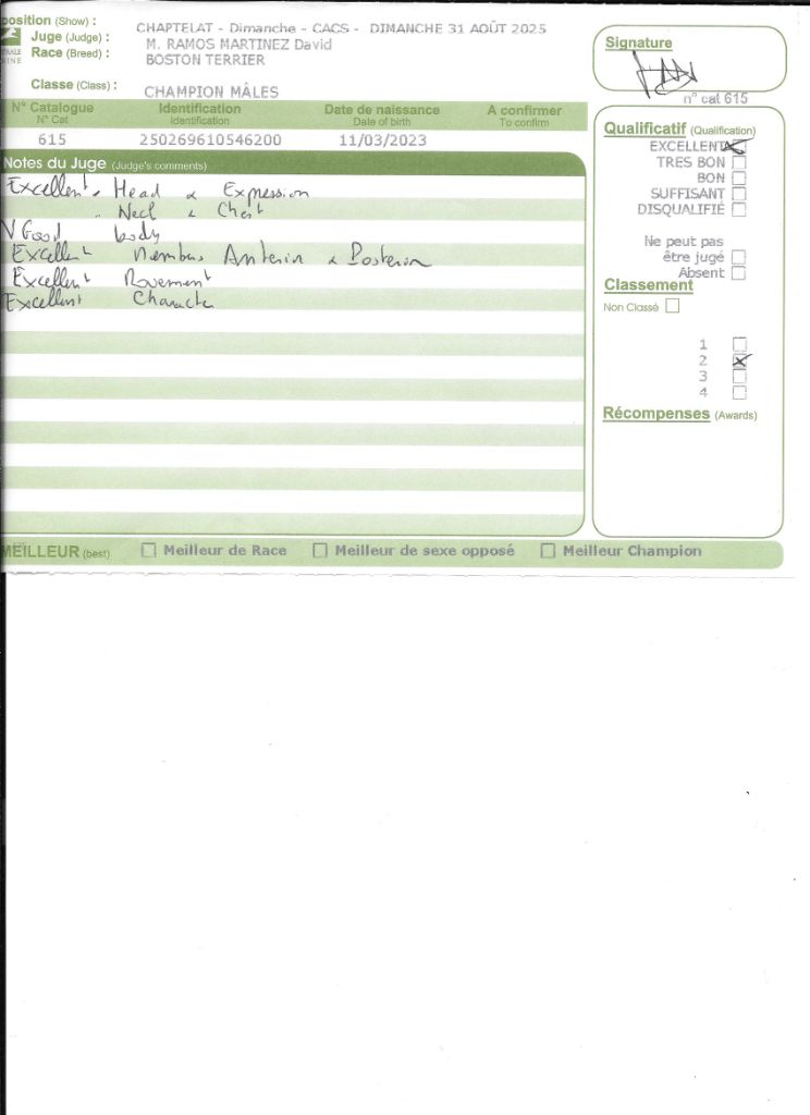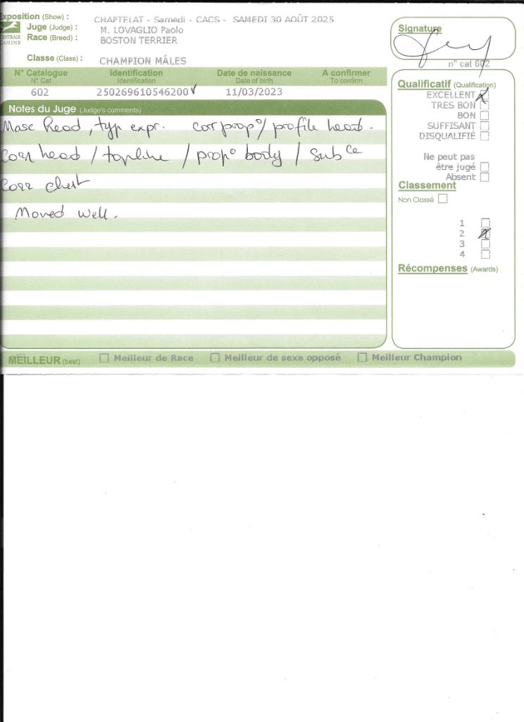 - CACIB BOS qualifié CRUFTS 2026