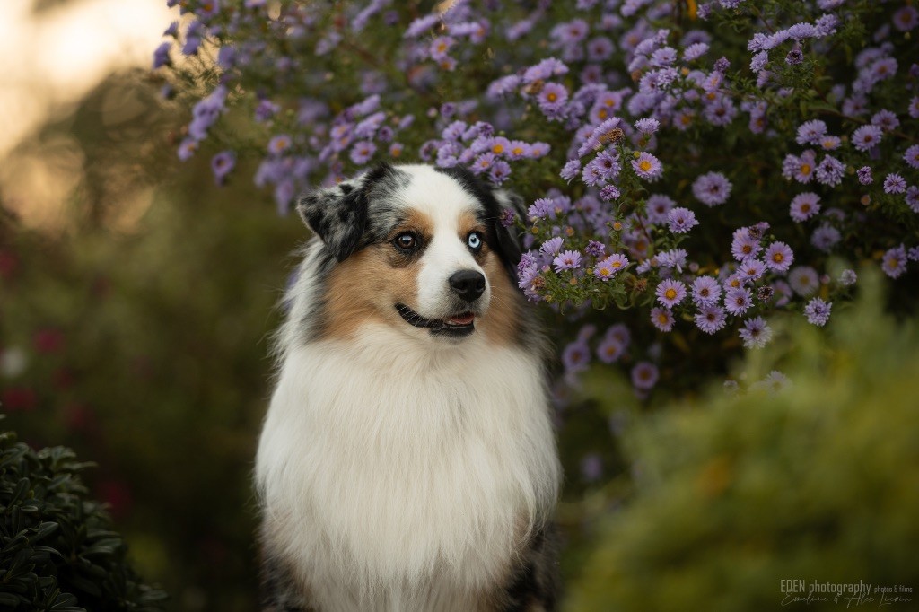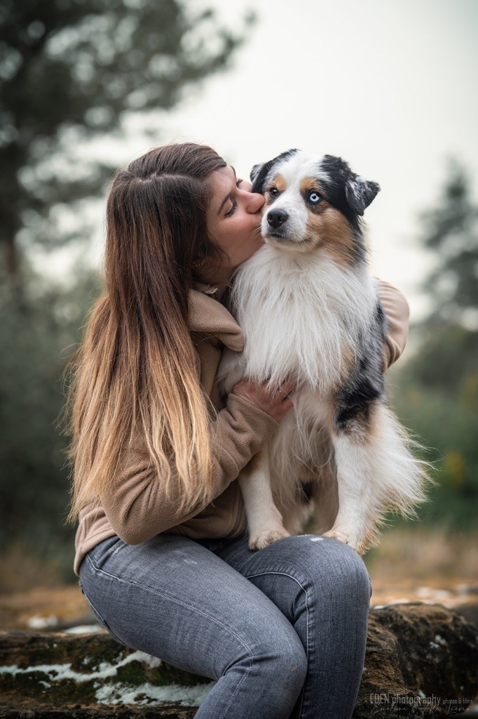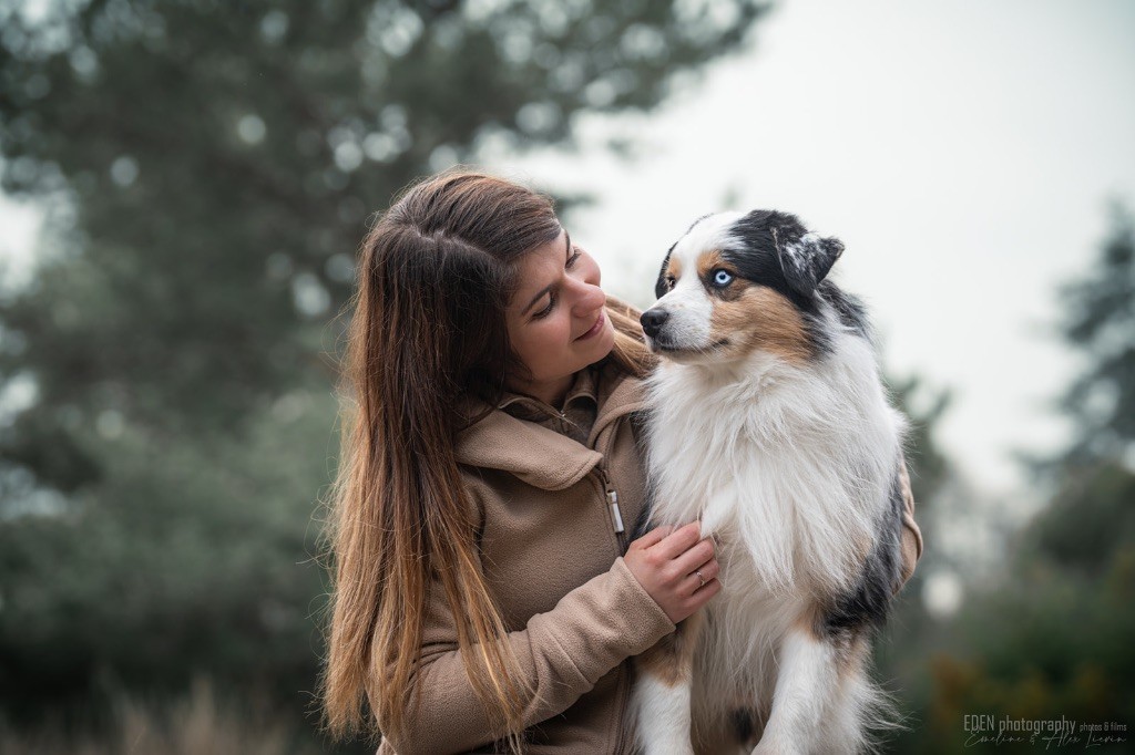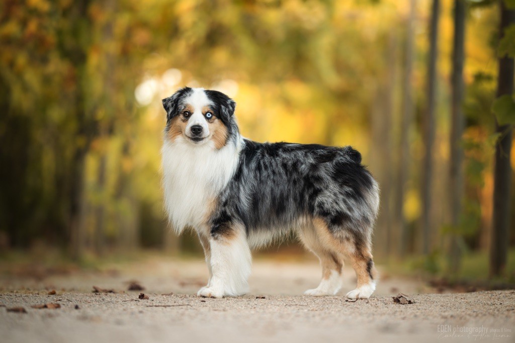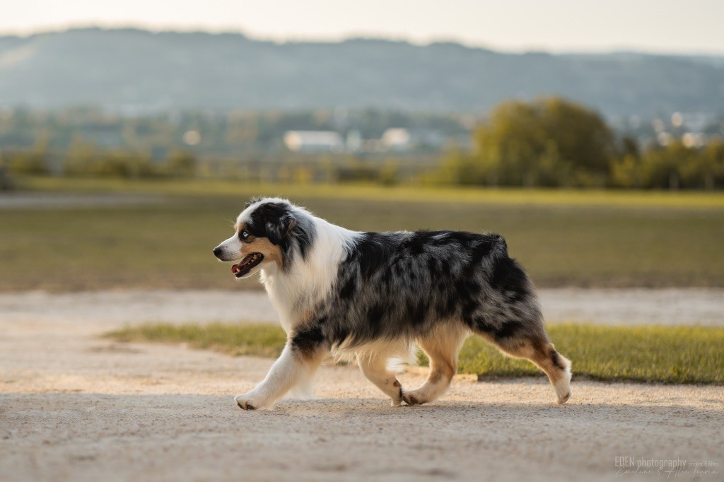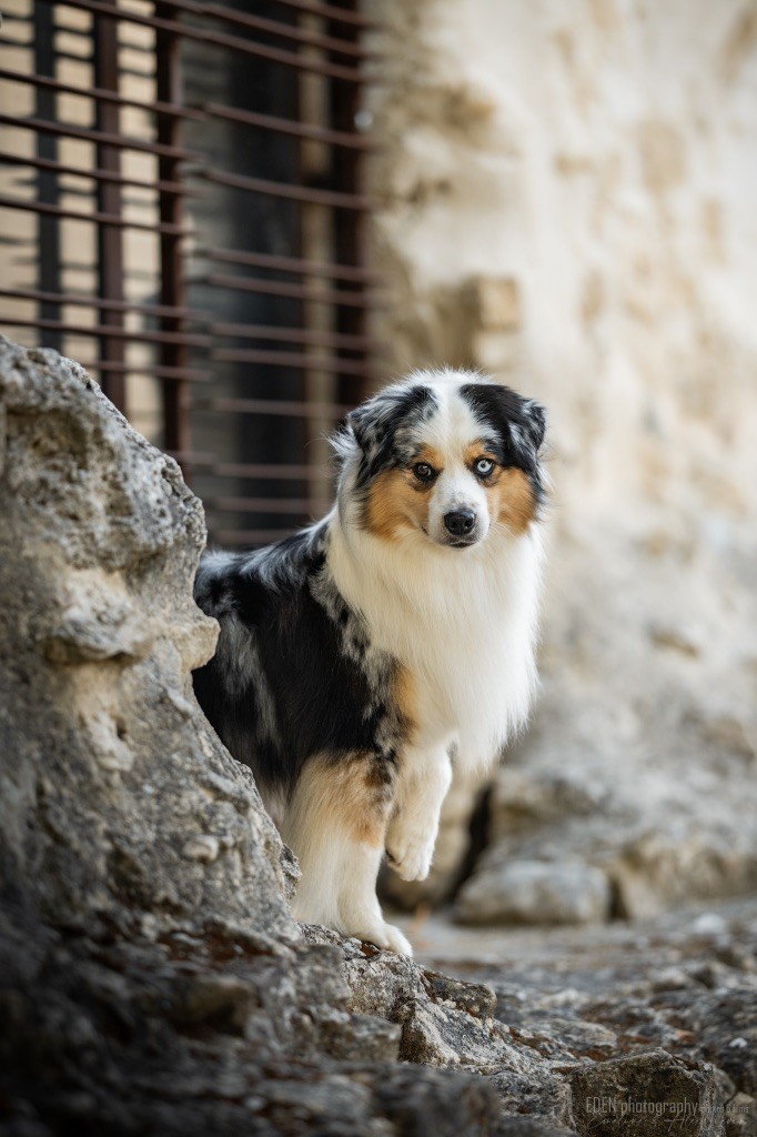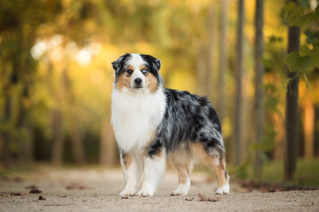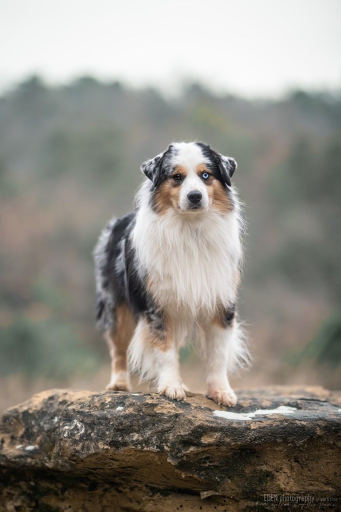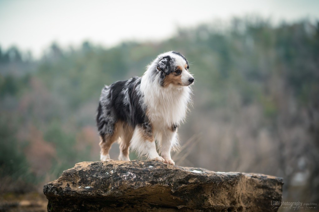 Nous sommes très heureux de vous présenter Archer, notre nouveau mâle arrivé en août 2023 d'Arizona. Toujours autant d'émotions que d'aller récupérer un import.. mais je dois dire que je me souviendrai toujours de ce jour là !!! Archer a beaucoup de prestance, il dégage vraiment quelque chose de wow !!! Et quand je l'ai aperçu au loin à la gare, mon coeur a fait boummmmQuelle rencontre ..INOUBLIABLENous remercions donc son éleveuse Nicole Dalton pour nous faire confiance une seconde fois, puisqu'Archer vient du même élevage que Billy. Il est au dessus de nos espérances, mille merci !Archer, c'est un petit chien complet. Il a tout pour plaire : la beauté & le tempérament Physiquement, c'est un petit chien de 39,5 cm, plutôt petit pour un mâle, avec beaucoup d'ossature, d'excellents aplombs, plutôt court de dos, une magnifique sortie d'encolure, d'excellentes angulations avant et arrières, et surtout un mouvement extraordinaire ! Ce chien flotte avec beaucoup de prestance. Quand à sa tête, ses yeux vairons en amande lui donnent une expression pleine de douceur et d'amour, ses oreilles sont de bonnes tailles, de bonnes formes et bien implantées. Son collier blanc complet met en valeur sa superbe encolure et son avant main vraiment chouette. J'adore également ses pattes de chat.Et côte caractère : c'est une CREME de petit chien !!!! Ma priorité avant toute chose ici, je suis donc combléeDifficile de rêver mieux, il est facile à vivre, sociable avec tous les congénéres, joueur, hyper affectueux, Archer vous tombera dans les bras pour se blottir contre vous, c'est mon premier chien qui aime réellement faire des câlins de la sorte, il ne connait pas les inconnus, tous les humains sont ses copains, il est très gourmand, donc facile pour l'apprentissage, il adore les enfants, il voyage super bien en voiture, il aime se faire toiletter, en balade il a un parfait rappel et en maison il est d'un calme olympien ! Un p'tit chien très malléable, qui est vite devenu mon ombre .... Il me suit de partout, on s'adore mutuellement, un énorme coup de coeur.Il a eu un chouette parcours aux USA en remportant de nombreux titres de beauté. Archer est devenu champion américain et grand champion silver. Il figure dans le top 20 des bergers américains aux USA. Il a aussi réussi de nombreux titres comme le canine good citizen, le travail sur troupeau, il est Farm dog certifié et trick dog novice.Un très joli palmarès pour notre adorable Archer.Il laisse derrière lui de nombreux bébés tous aussi beaux que lui, et de nombreux champions dans sa production.Maintenant nous sommes impatients de découvrir ce que l'avenir nous réserve avec notre joli garçon et d'ouvrir ce nouveau chapitre en France...