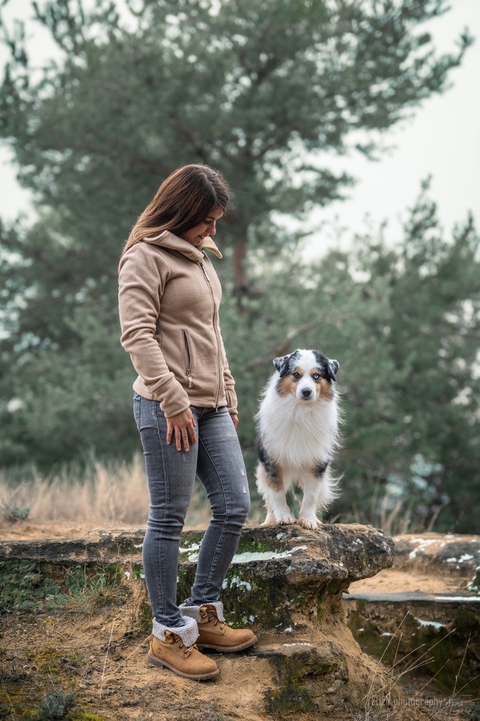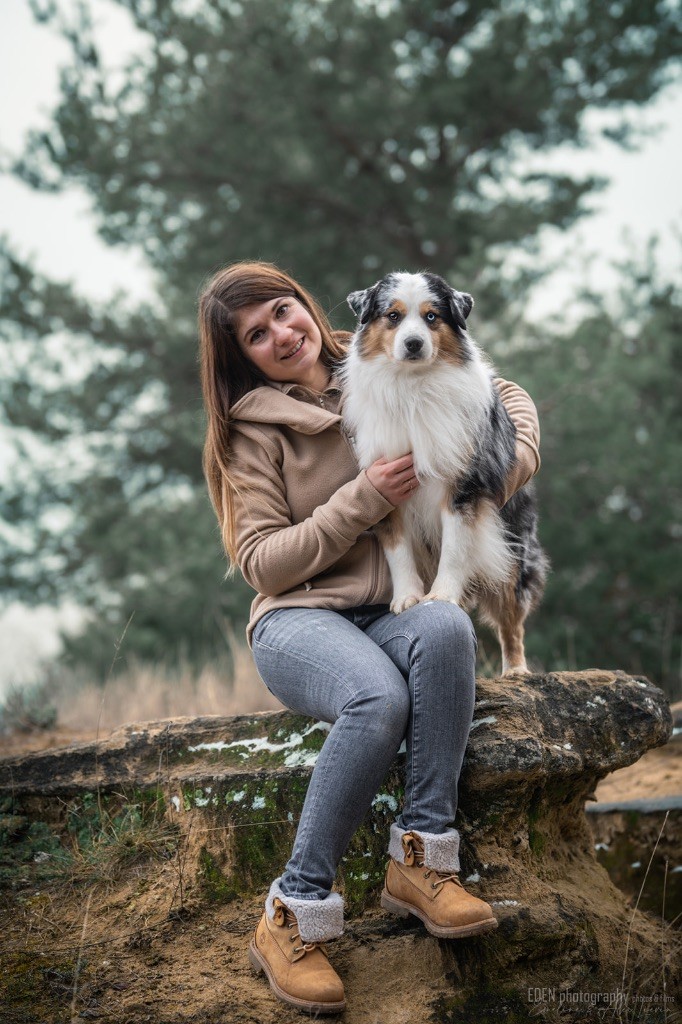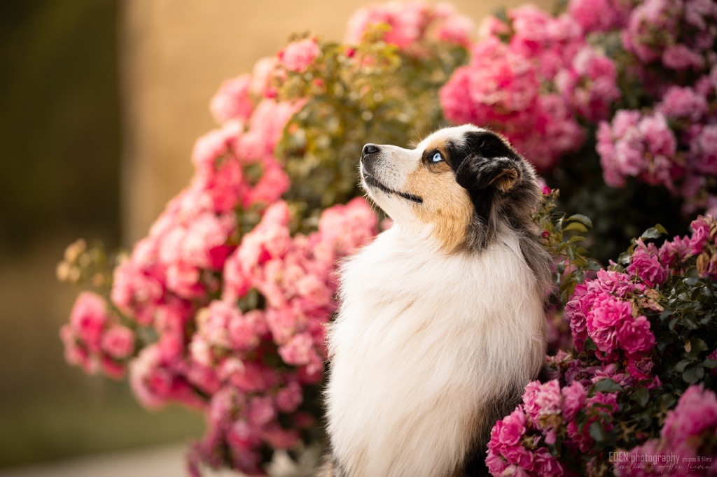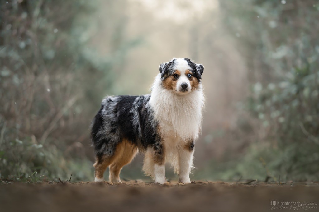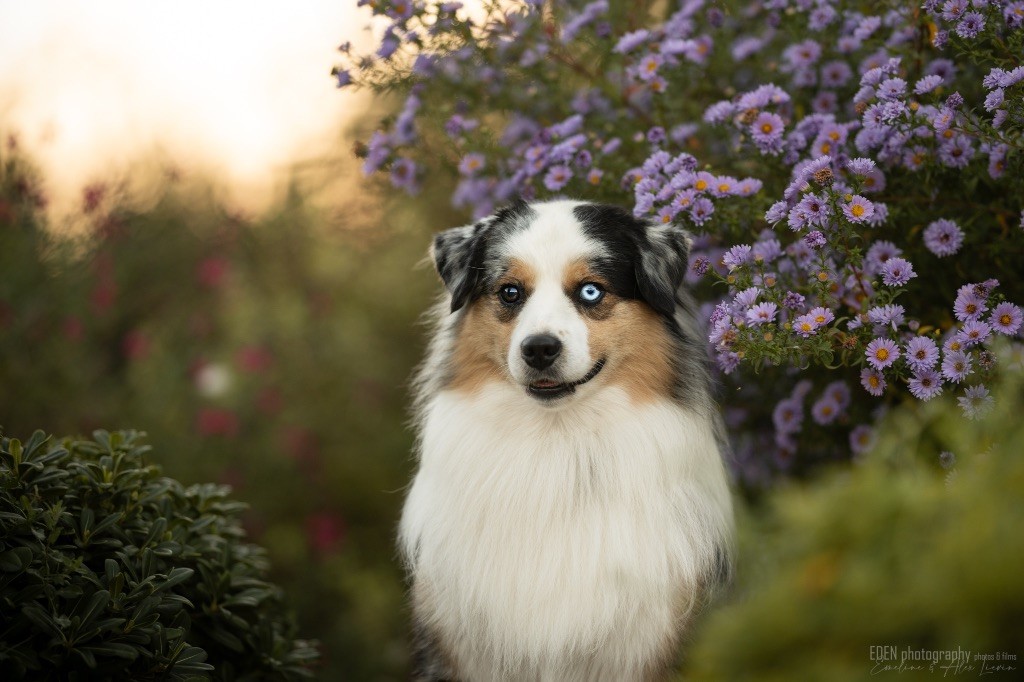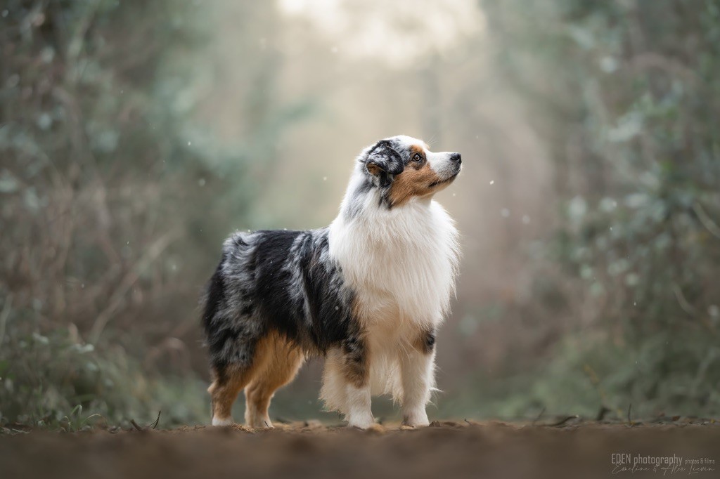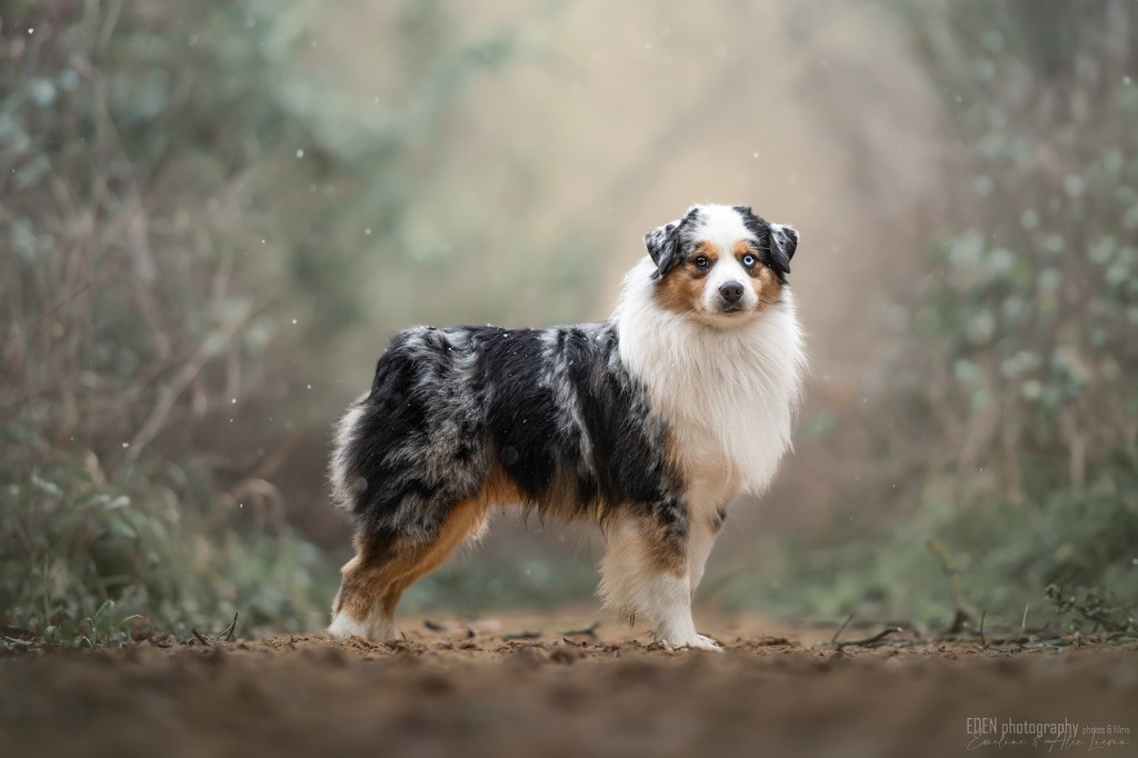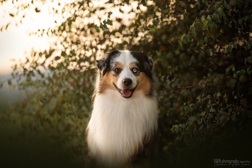 Nous sommes très heureux de vous présenter Archer, notre nouveau mâle arrivé en août 2023 d'Arizona. Toujours autant d'émotions que d'aller récupérer un import.. mais je dois dire que je me souviendrai toujours de ce jour là !!! Archer a beaucoup de prestance, il dégage vraiment quelque chose de wow !!! Et quand je l'ai aperçu au loin à la gare, mon coeur a fait boummmmQuelle rencontre ..INOUBLIABLENous remercions donc son éleveuse Nicole Dalton pour nous faire confiance une seconde fois, puisqu'Archer vient du même élevage que Billy. Il est au dessus de nos espérances, mille merci !Archer, c'est un petit chien complet. Il a tout pour plaire : la beauté & le tempérament Physiquement, c'est un petit chien de 39,5 cm, plutôt petit pour un mâle, avec beaucoup d'ossature, d'excellents aplombs, plutôt court de dos, une magnifique sortie d'encolure, d'excellentes angulations avant et arrières, et surtout un mouvement extraordinaire ! Ce chien flotte avec beaucoup de prestance. Quand à sa tête, ses yeux vairons en amande lui donnent une expression pleine de douceur et d'amour, ses oreilles sont de bonnes tailles, de bonnes formes et bien implantées. Son collier blanc complet met en valeur sa superbe encolure et son avant main vraiment chouette. J'adore également ses pattes de chat.Et côte caractère : c'est une CREME de petit chien !!!! Ma priorité avant toute chose ici, je suis donc combléeDifficile de rêver mieux, il est facile à vivre, sociable avec tous les congénéres, joueur, hyper affectueux, Archer vous tombera dans les bras pour se blottir contre vous, c'est mon premier chien qui aime réellement faire des câlins de la sorte, il ne connait pas les inconnus, tous les humains sont ses copains, il est très gourmand, donc facile pour l'apprentissage, il adore les enfants, il voyage super bien en voiture, il aime se faire toiletter, en balade il a un parfait rappel et en maison il est d'un calme olympien ! Un p'tit chien très malléable, qui est vite devenu mon ombre .... Il me suit de partout, on s'adore mutuellement, un énorme coup de coeur.Il a eu un chouette parcours aux USA en remportant de nombreux titres de beauté. Archer est devenu champion américain et grand champion silver. Il figure dans le top 20 des bergers américains aux USA. Il a aussi réussi de nombreux titres comme le canine good citizen, le travail sur troupeau, il est Farm dog certifié et trick dog novice.Un très joli palmarès pour notre adorable Archer.Il laisse derrière lui de nombreux bébés tous aussi beaux que lui, et de nombreux champions dans sa production.Maintenant nous sommes impatients de découvrir ce que l'avenir nous réserve avec notre joli garçon et d'ouvrir ce nouveau chapitre en France...