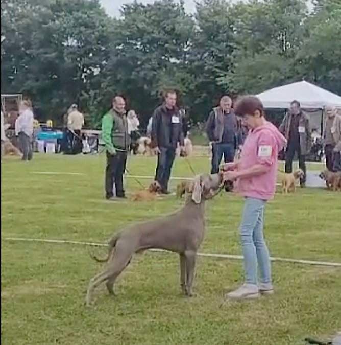 Tête très masculine - Poitrine bien descendue - Bonne attache et port d'oreilles - Bonne ligne dorsale en statique et à la marche - Excellent mouvement et présentation