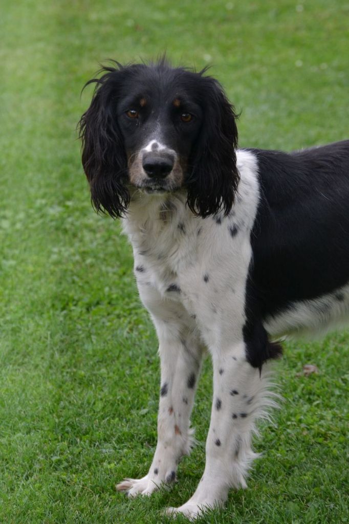 Tonique et joyeuse, Shelby est bien une Springer avec toutes ses qualités: active dans la quête, généreuse, endurante, elle passe aussi partout grâce à son gabarit ni trop grand, ni trop petit. En bref, une super Springer excellente à la chasse. Elle est tricolore, noire et feu, et elle est petite fille de nombreux Champions de travail, il y en a 24 à son pedigree.