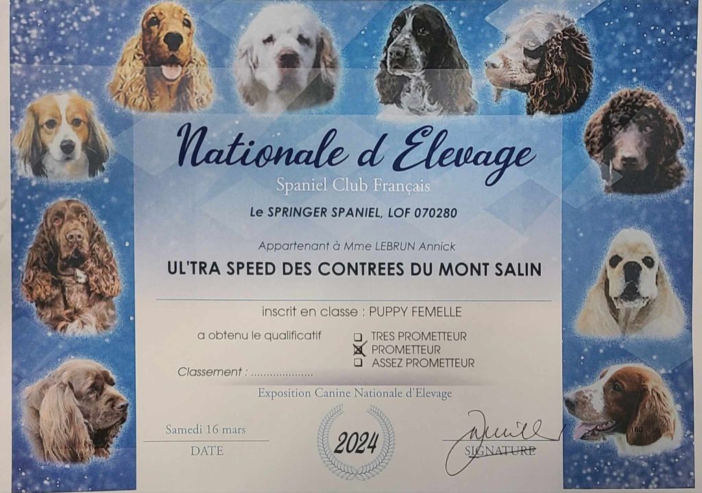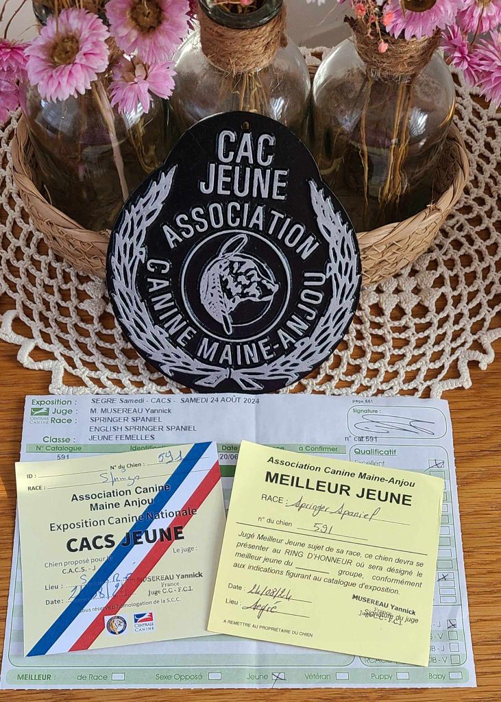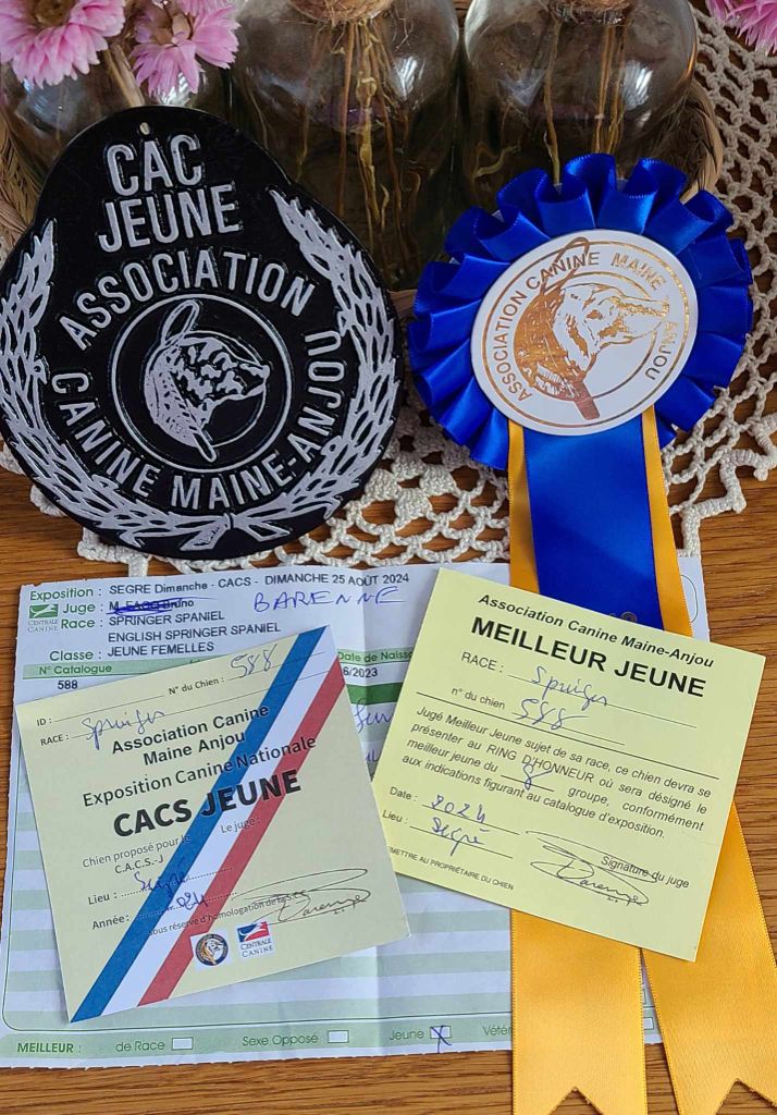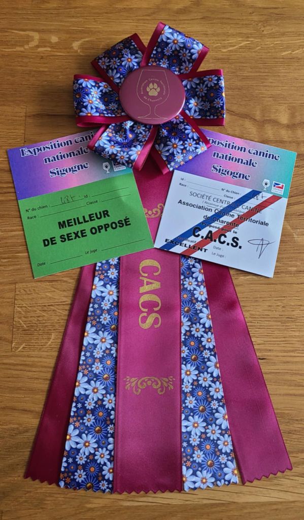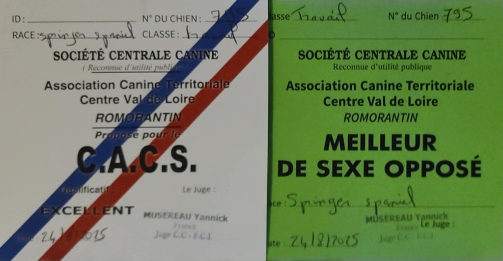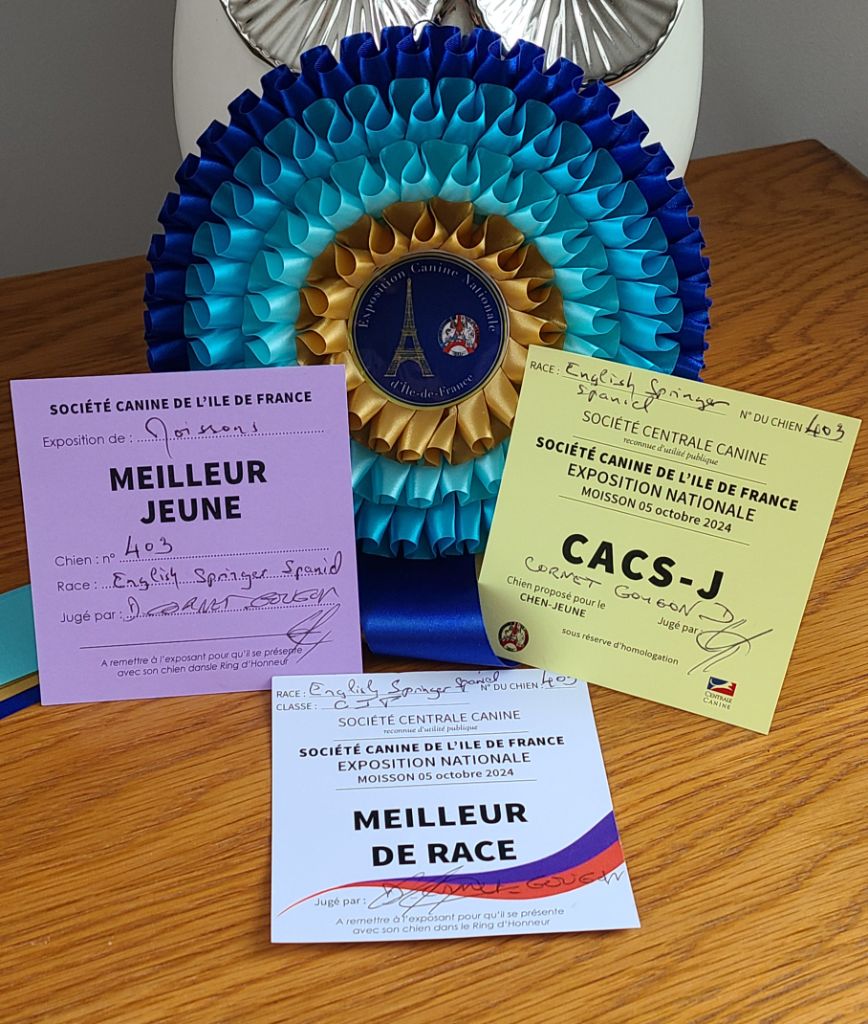 1ere EXCELLENT classe jeune femelle : Juge Mme CORNET-GOUGON26 points au TAN (sélectionné pour la finale) :Juge Mr FEYLER ChristianInitiation FIELD validé : Juge Mr FEYLER Christianconfirmée ce jour : Juge Mme CORNET-GOUGON