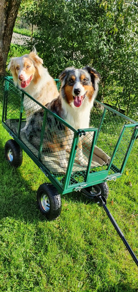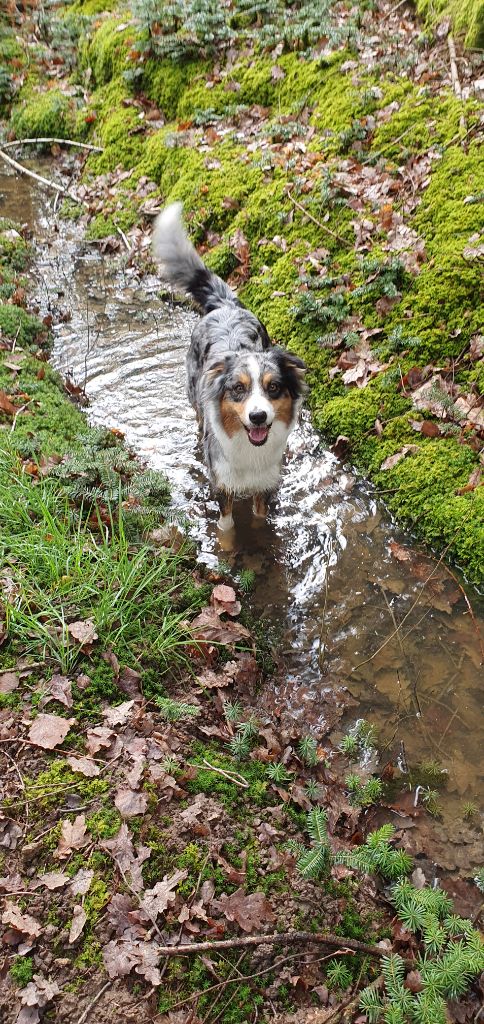 Elle pratique les sports canins qu'elle apprécie beaucoup: cani vtt, cani trottinette, agility.