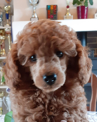pseudo achondroplasie - 1.1 indemne longueur de poil variant 1 - homozygote mutéPRCD atrophie rétinienne progressive - 1.1 indemnelongueur de poil - homozygote mutélocus K noir dominant - enregistrée SCClocus S panachure de blanc - n'est pas porteurlocus E extension - homozygote locus I pheomelanine - homozygote locus C-Curl - homozygote locus B Eumelanine noire - homozygote identification ADN - enregistrée SCClocus A fauve charbonné - hétérozygote agouti sauvageencephalopathie néonatale du caniche - 1.1 indemne DM1A myelopathie dégénerative - 1.1 indemne Von Willebrand type 1 - 1.1 indemne rotules - 0.1