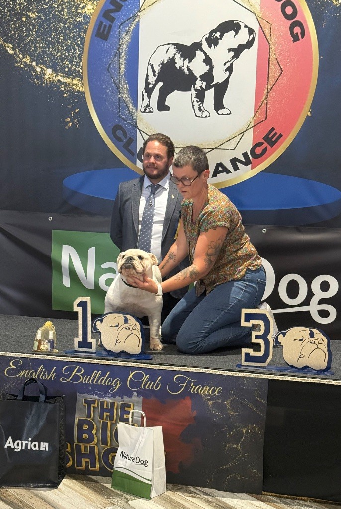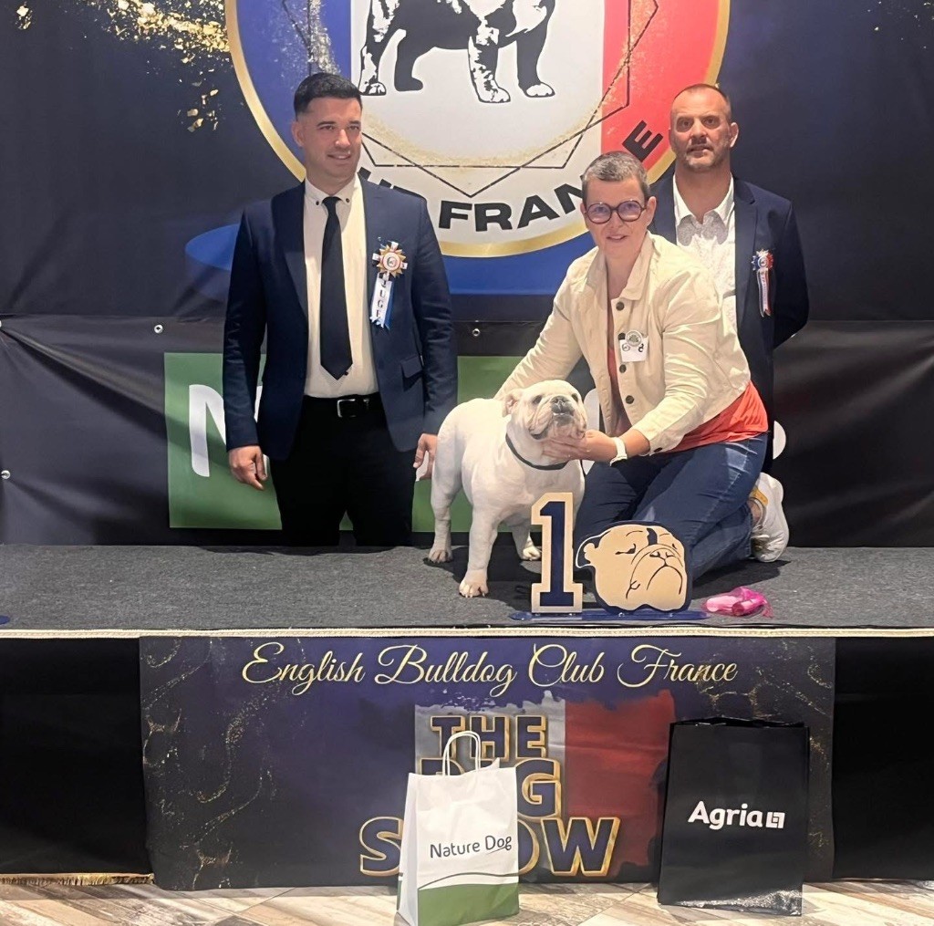 BlancExcellent typeEn excellente conditionSujet harmonieuxTête avec une bonne expression typiqueBon crâne fort,large et carréNarines bien ouvertesBonnes rides finesBon museau court et largeBonne pigmentation Bonne largeur de la mâchoire inférieureBonne courbe de la mâchoire inférieureBons yeux bien foncés et sainsYeux bien placés Bonnes oreilles en rose bien placées Bonne ligne de dessusCotes bien rondesPoitrine profonde et bien descendueBons aplombs avantBonnes épaules bien rapportées Bon piedsBon arrière mainBonne angulation arrière Queue bien placéeQueue droiteBonnes allures typiquesChien sympathique