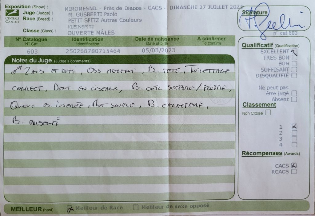 - 1er Excellent CACIB Jeune Meilleur Jeune Meilleur de race
