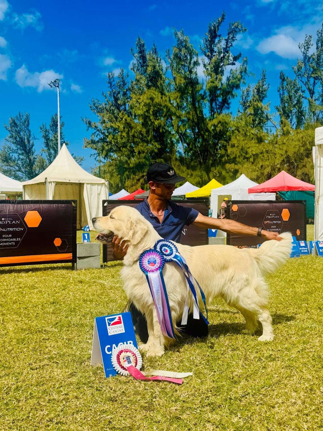 Chien Golden Retriever Unter des arènes du flamboyant