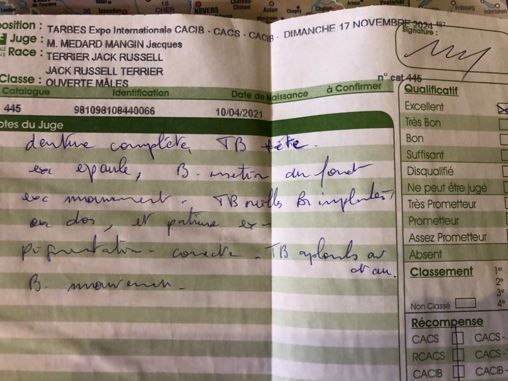 - 1er EXC , CACS , CACIB, BOS (meilleur de sexe opposé)
