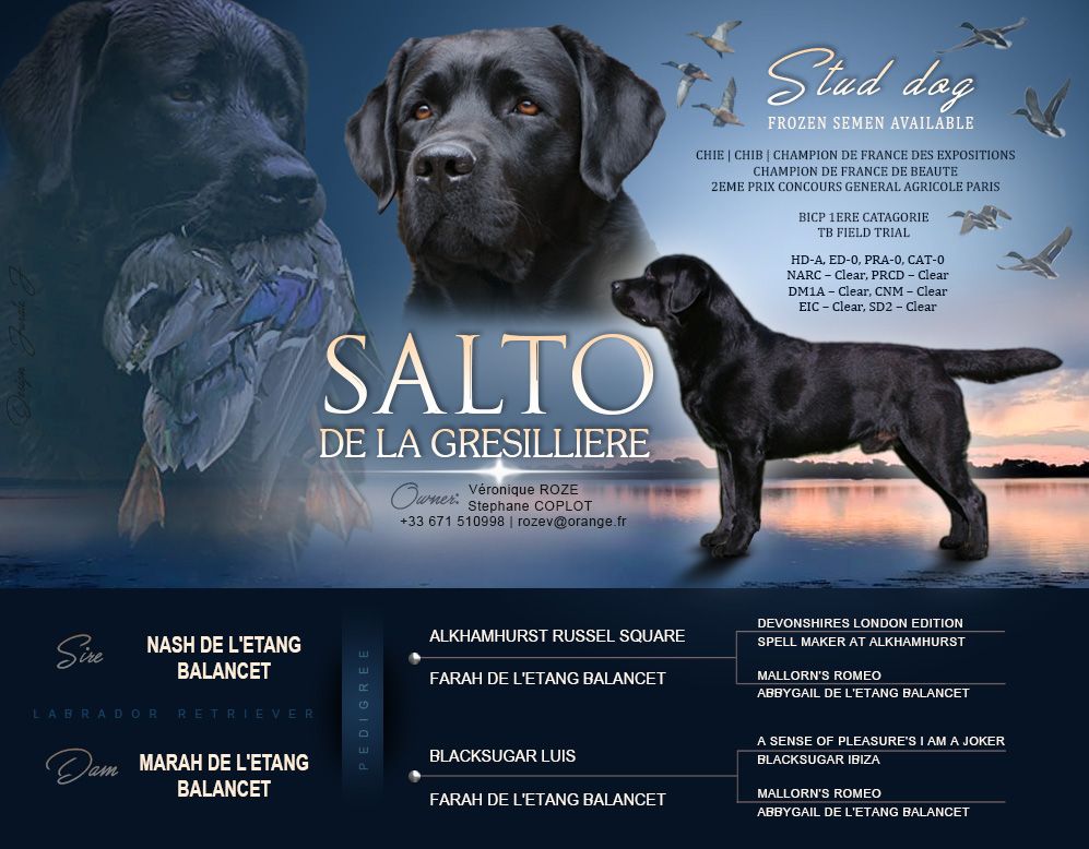 Chien Labrador Retriever CH. Salto De La Gresilliere