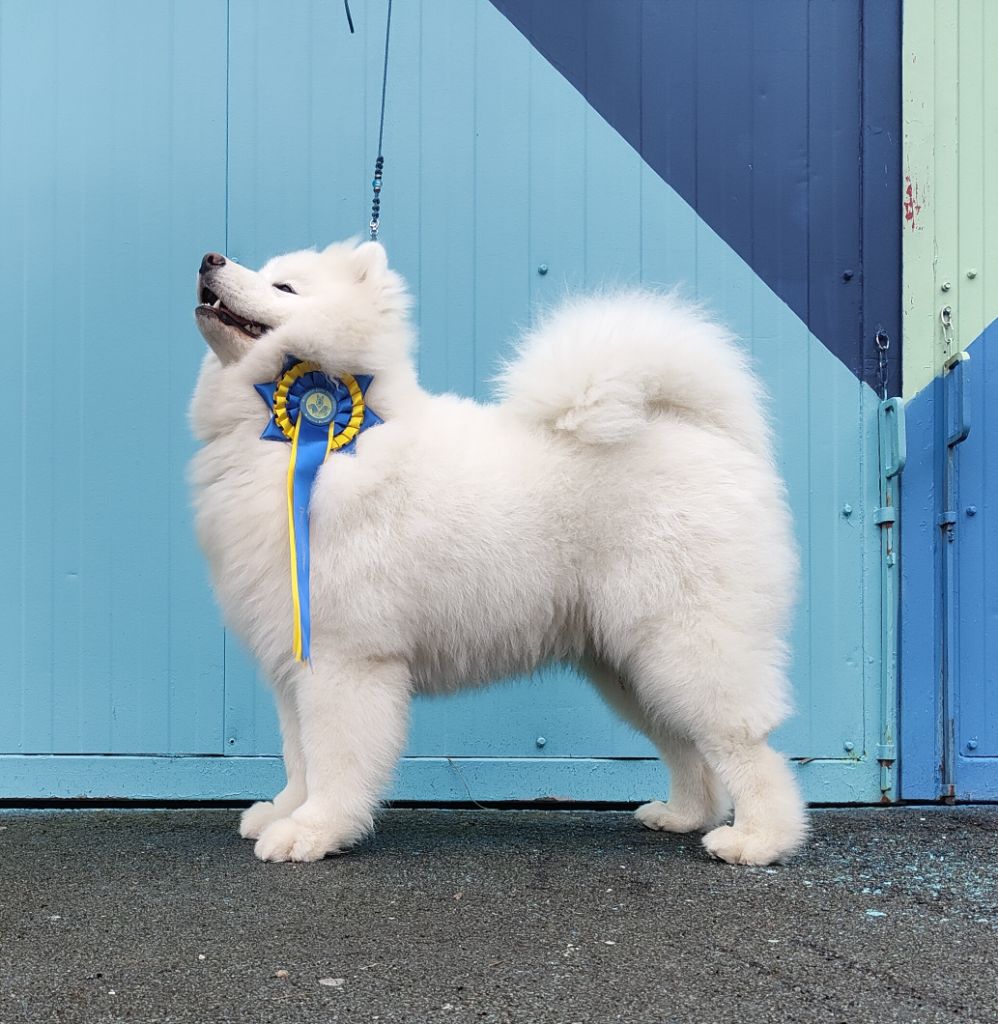 Premier excellent, meilleur jeune Excellente structure, excellent équilibre, excellente pigmentation, texture de poils fabuleuse, excellente ligne du dessus, le sourire est parfait, derrière il est un peut étroit mais en général c'est un excellent chien