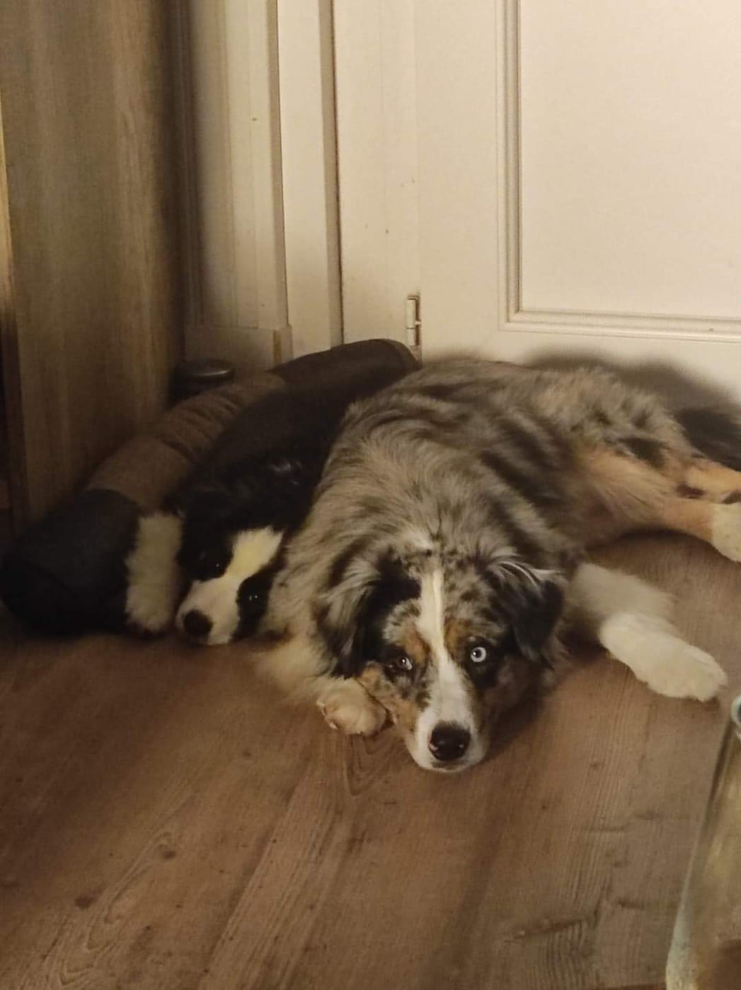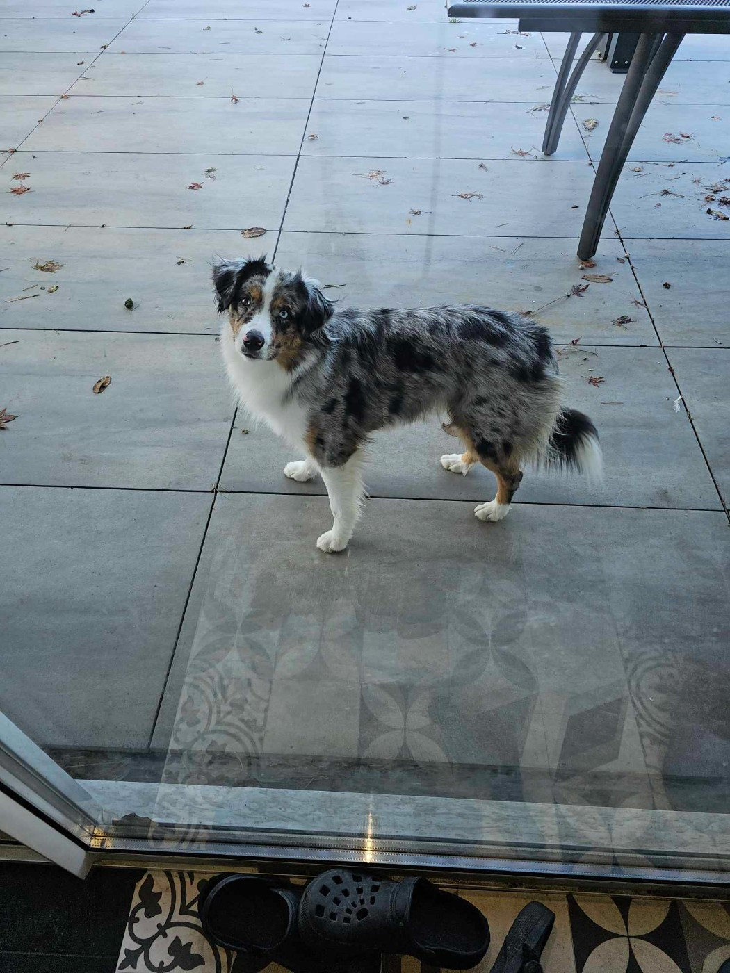 Tolkien dit "Tapioca" appartient à ma fille. C'est un gentil chien très dynamique qui pratique l'agility ! il vient d'être confirmé à 45 cm (queue longue) car il va rentrer dans mon programme d'élevage les tests sont ok et nous fera des bébés à l'élevage de temps en temps . il est proposé en saillie exterieure uniquement sur chiennes testées et confirmées. C'est un chien avec une belle construction et des couleurs franches . Il vient d'être papa de 7 beaux chiots . Porteur rouge