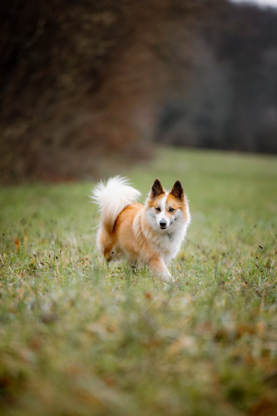 En balade, Talia reste volontiers au pied, tout en exprimant l’énergie et la joie de vivre typiques du Berger Islandais : elle apprécie les moments de liberté, aime courir dans les champs et interagir avec le reste de la meute.