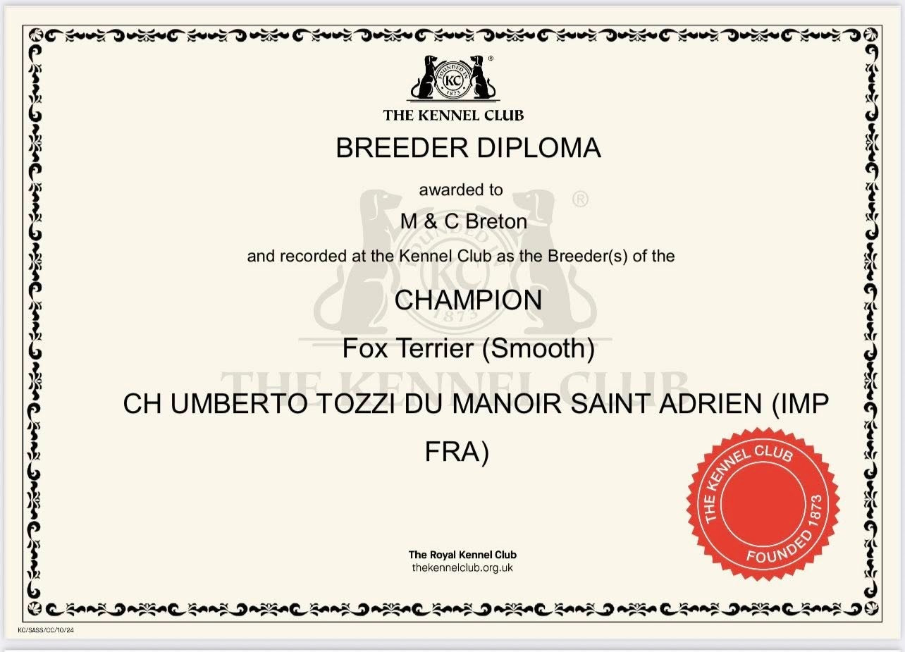Chien Fox Terrier Poil lisse CH. Umberto tozzi du Manoir Saint Adrien