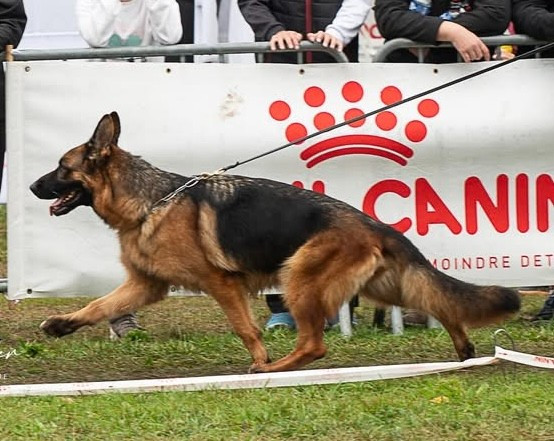 Femelle avec une excellente anatomie et expression. A exprimé un excellent mouvement et une excellente tenue au pas.