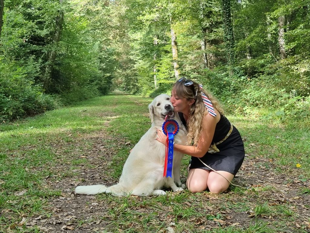 « Bebelle » est notre première chienne, et dès le premier jour, elle a su nous charmer incarnant parfaitement tout ce que l'on peut attendre de cette merveilleuse race. Fidèle à la réputation et aux qualités typiques des Golden , elle est incroyablement sociable et toujours prête à faire de nouvelles rencontres, que ce soit avec des humains ou d'autres animaux. Sybelle possède une sociabilité remarquable, se montrant amicale avec n'importe quel chien, mais aussi avec toutes les autres espèces.