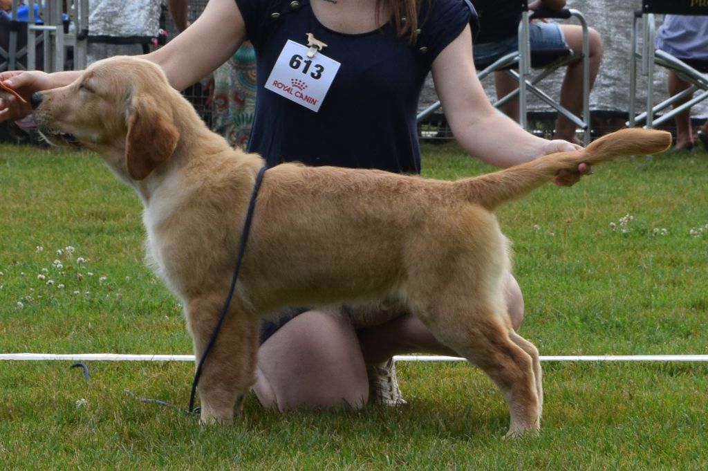 5 mois, tête très masculine, DCC bien en place, truffe bien pigmentée, EXC ossature et construction, EXC pieds et aplombs, très forte pigmentation, se présente bien, EXC mouvements.A titre exceptionnel "Sujet d'avenir"