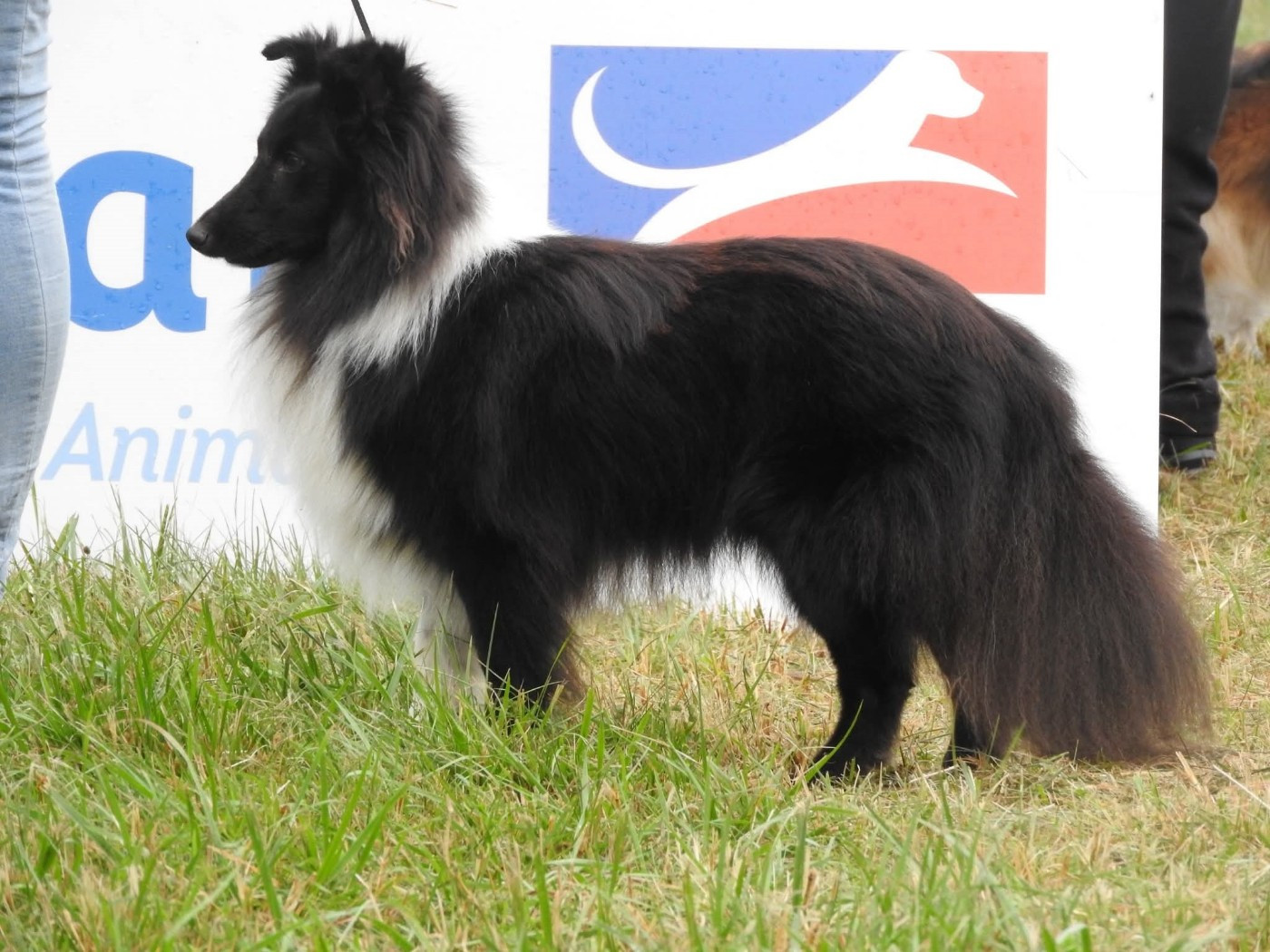 Très Beau Mâle noir bicolore. D.C.C. Très bonne tête conforme. Excellent port d'oreilles. Excellente encolure. Excellentes poitrine et ligne de dos. Excellentes proportions de corps. Excellentes angulations avant et arrière. Très bonne longueur de fouet. Excellentes allures dynamiques.1er Excellent Classe Intermédiaire Male