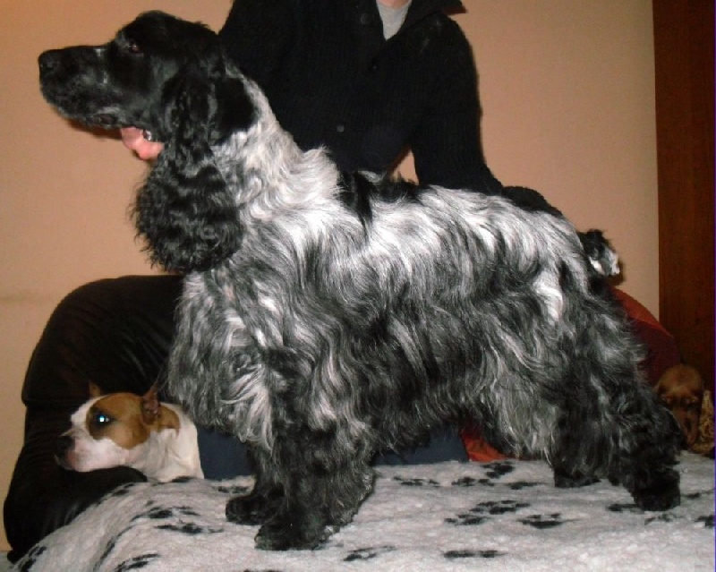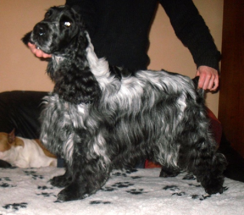 Classe Intermédiaire,Belle dentition, belle taille, joli jeune chien, très frétillant, jolie tête avec stop bien marqué, belle ossature, bons pieds, corps court, bien pour son âge, bonne AR main, beau poil.
