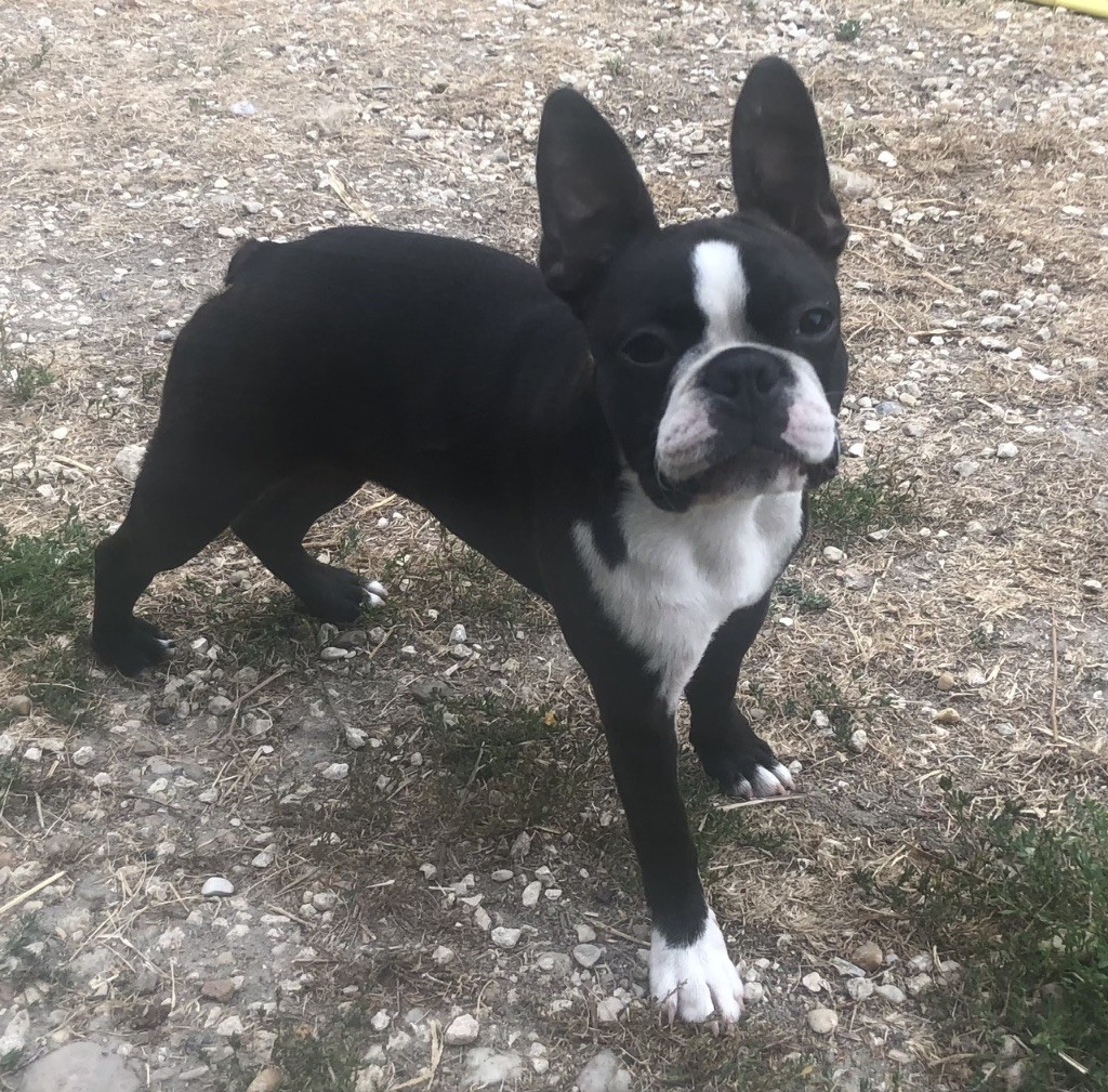 Chien Boston Terrier Velvett black themis de la source aux diamants