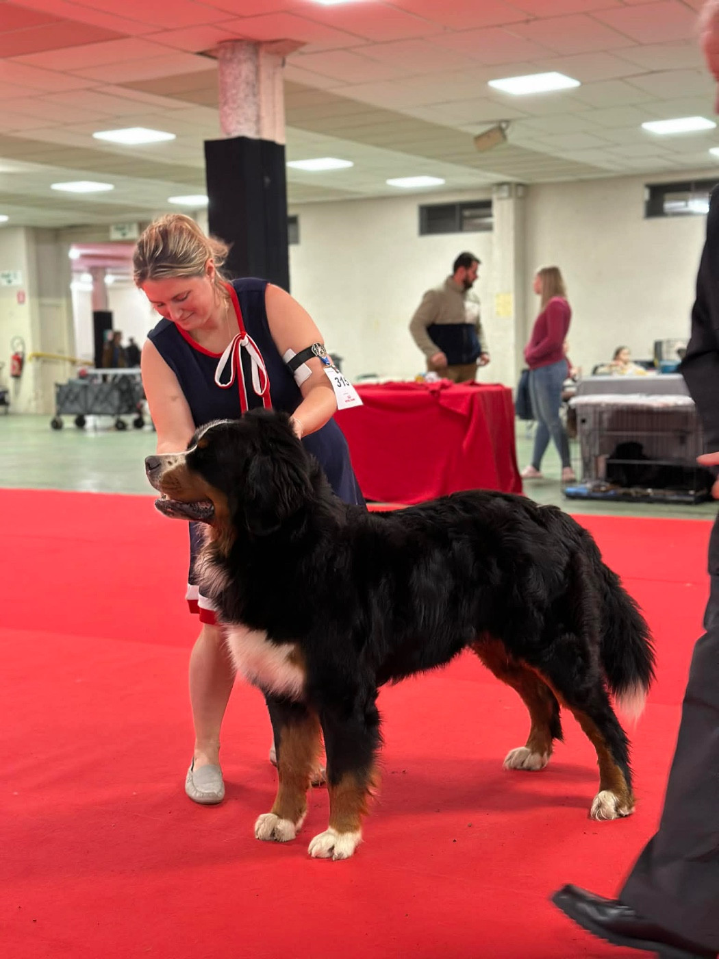 Chien dans le type Le corps ne doit pas être plus long Tête masculine ,yeux souhaités plus foncés Bonne forme de paupière , arcade un peu marquée Excellente denture et articule , bonne pigmentation Très bonne ligne de dos , bonne longueur de fouet Excellente angulation avant /arriereLaxité au niveaux du coude , fouet porté haut Jolie couleur et marquage Excellent tempérament