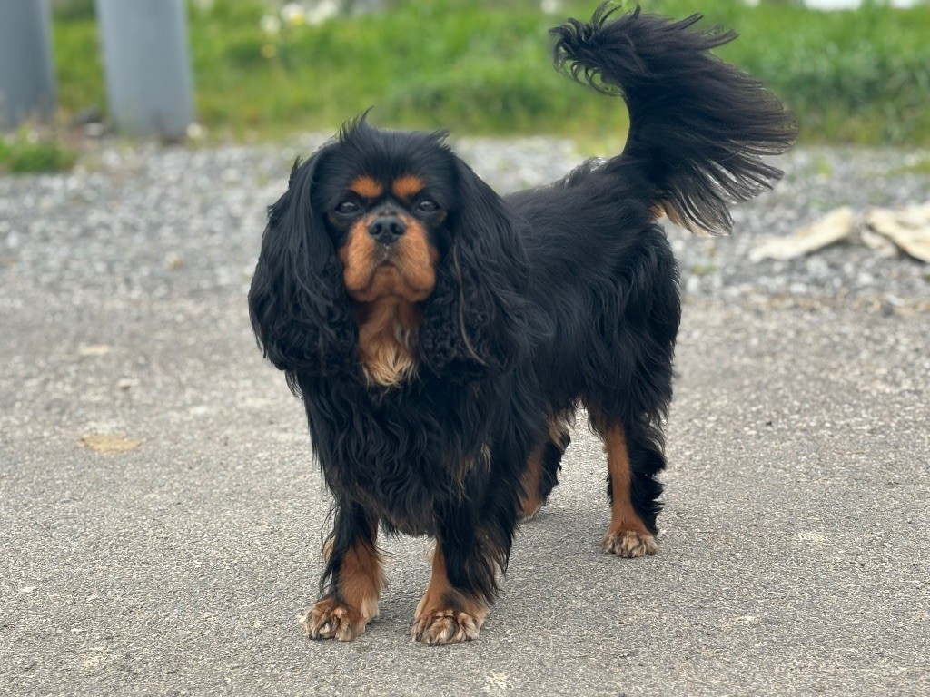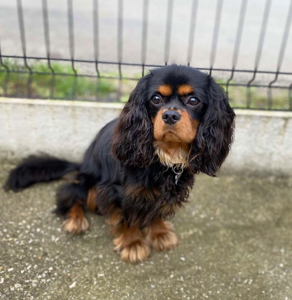 Sun King, notre mâle Cavalier King Charles noir et feu, est né le 27/12/2021 Il est disponible pour saillie. LOF et confirmé, il est en parfaite santé et à jour de tous ses vaccins.