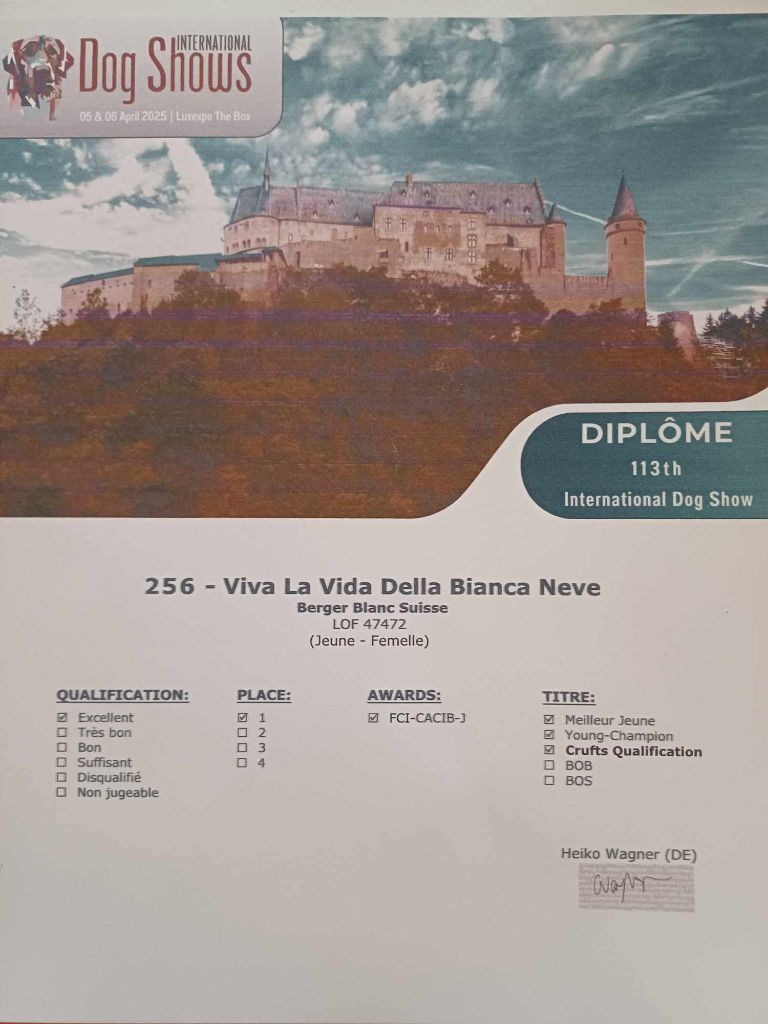 - 1er Excellent -FCI-CACIB-J -Meilleur Jeune -Young Champion -Crufts Qualification