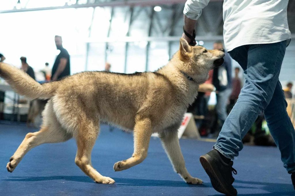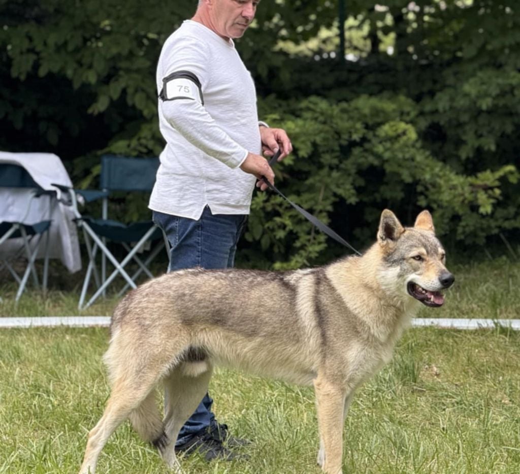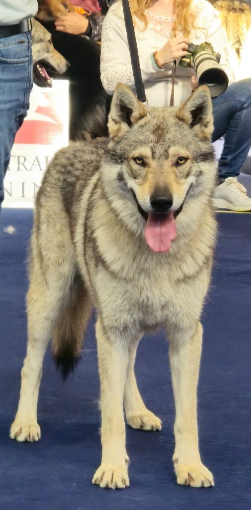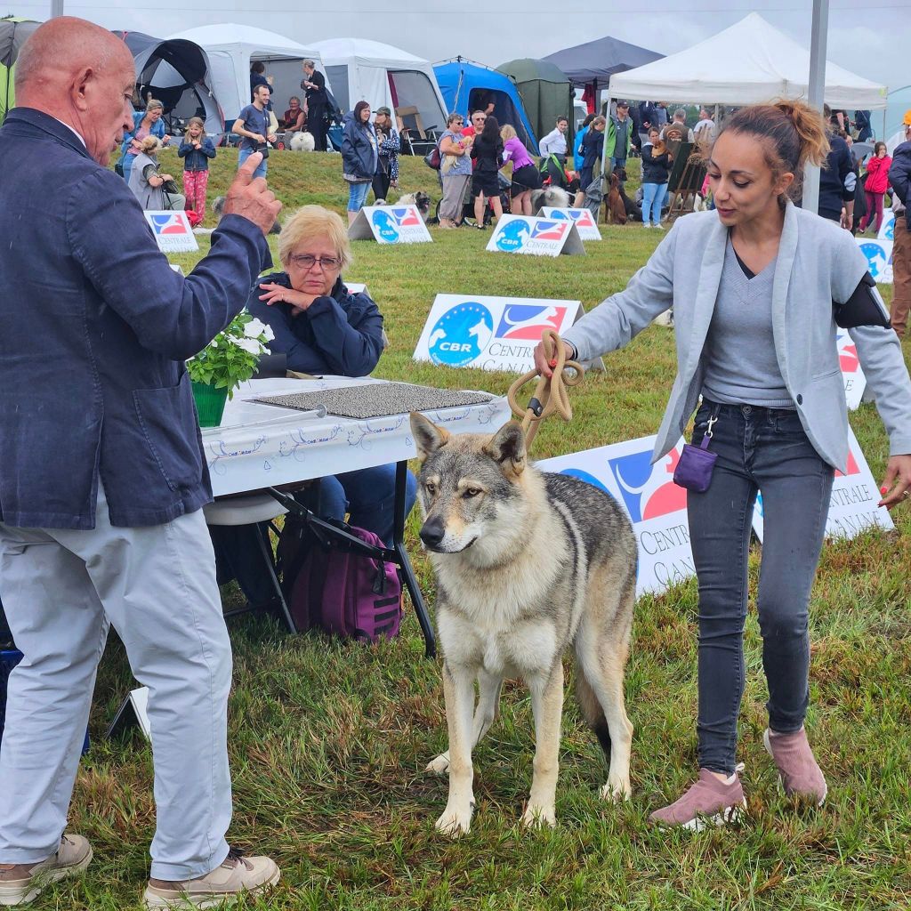 Excellente dentition. Bon rapport crâne-chanfrin aurais préféré un peu plus long. Ensemble corporel dans le type. Excellents membres avant/arrière. Mouvements lupoïdes. Bonne marche dans l'ensemble, facile à examiner