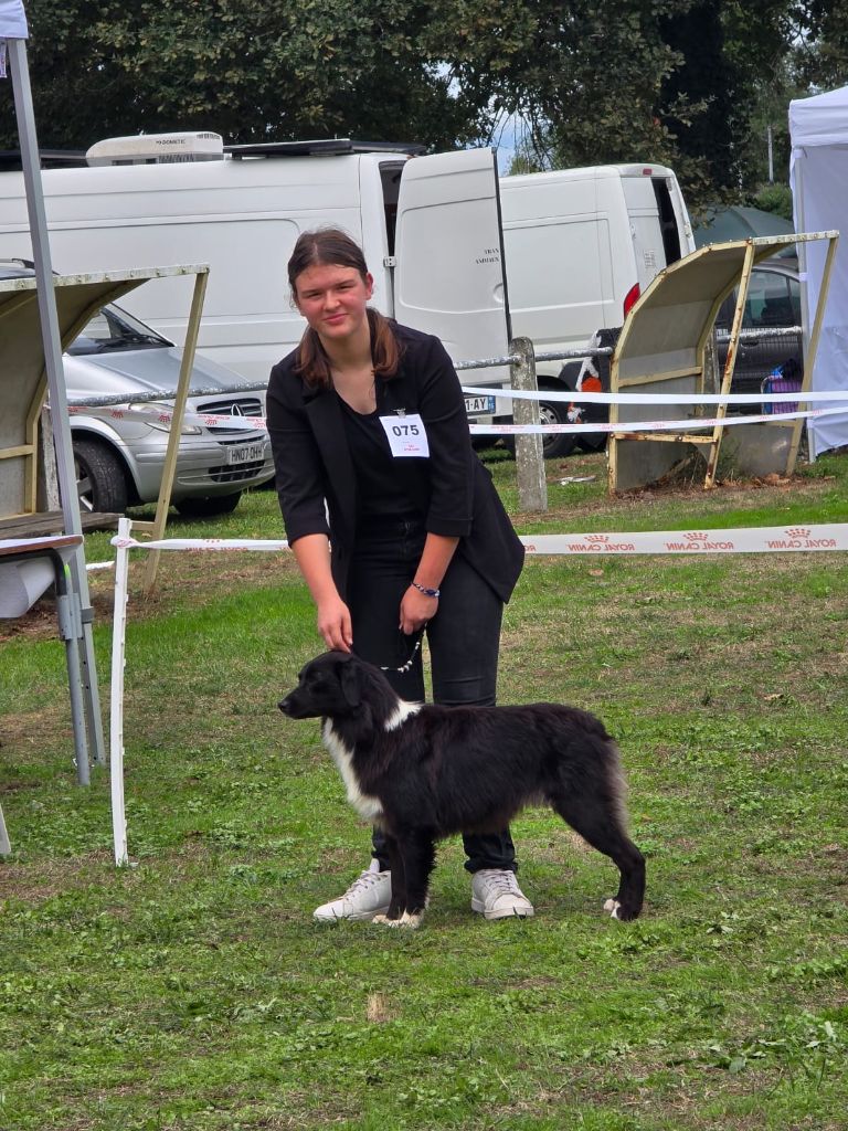 Féminine, très juvénileDCC, tête sèche Excellentes proportions/yeuxTrès bon port d'oreilleManque de mentonUn peu courtePoitrine très légèreExcellentes angulations avant/arrièreOssature légèreExcellents pieds/aplombsRobe en mueAllures/Caractère à travailler