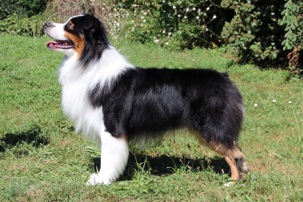 Tokyo est un berger australien typique : modéré , musclé avec de belles allures.