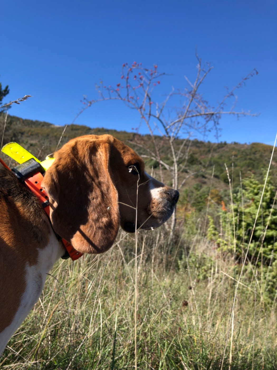UMCA est un adorable chien, vit en meute, peu aboyeur au chenil, élevé avec des enfants, il est confirmé au LOF.