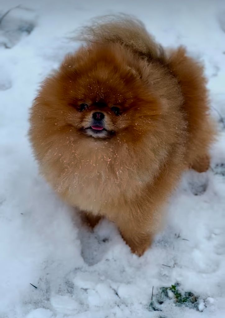 Du Marquis de la Vaunage à la joie de vous présenter sa femelle Spitz Pomeranian Naine Suzie, femelle de 18 cm orange-or d'1kg400. Une poupée câline et toute douce.