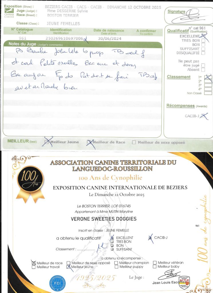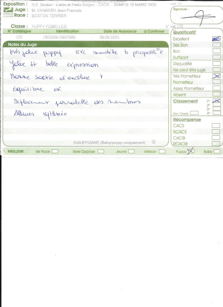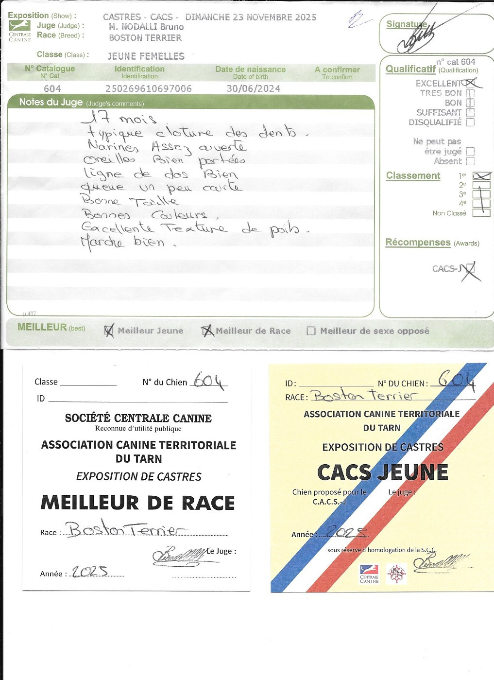 Manifestion : NATIONALE D'ELEVAGE BOSTON TERRIER 2025 - Juge : Mr ESCOFFIER Jean-Louis (FR)