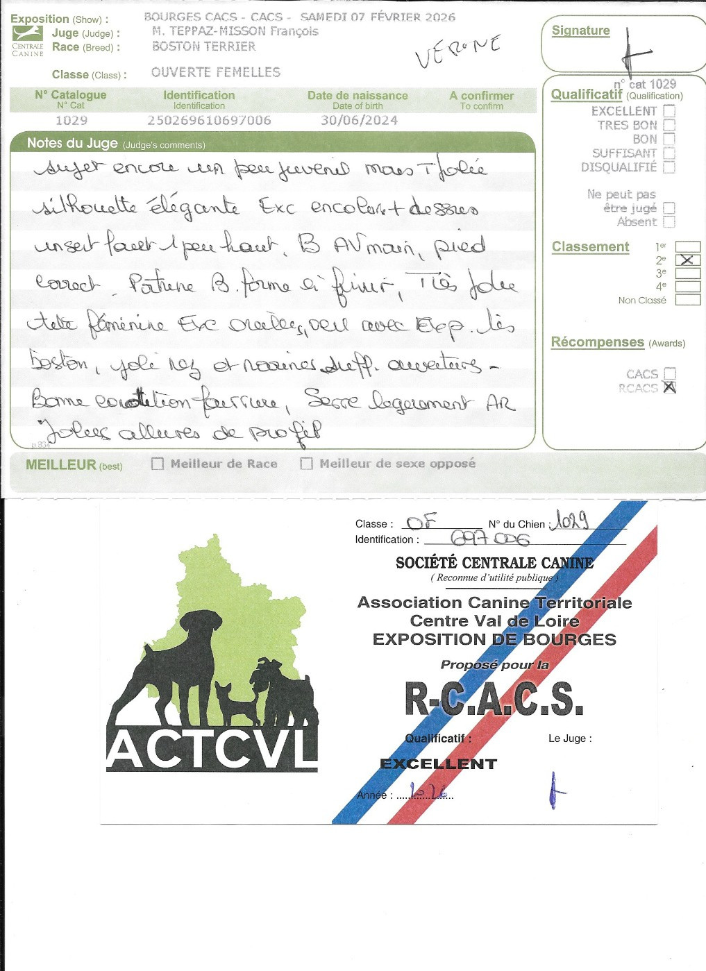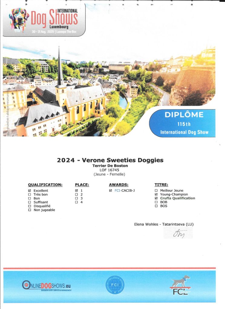 - 1° EXC CACIB jeune qualifiée CRUFTS 2026