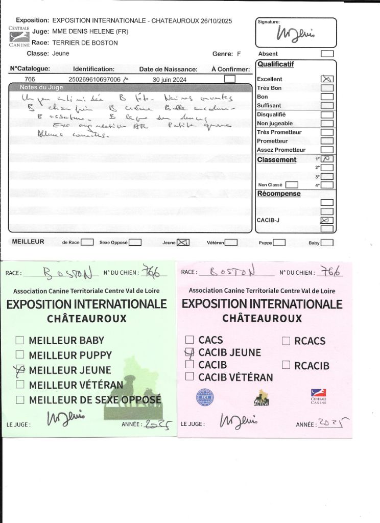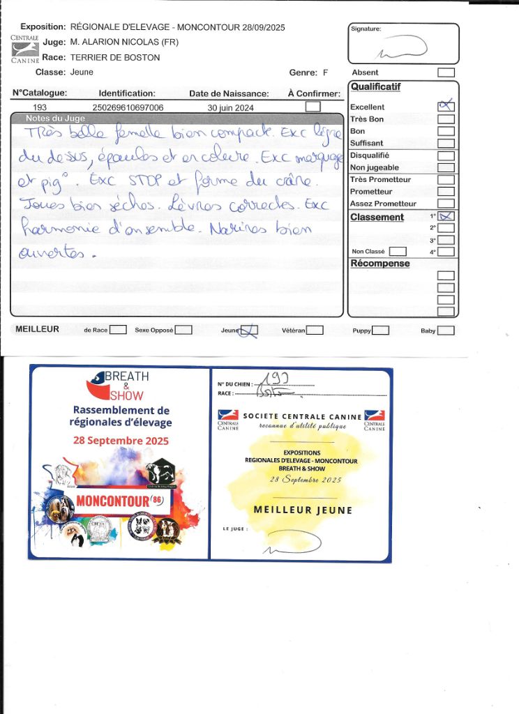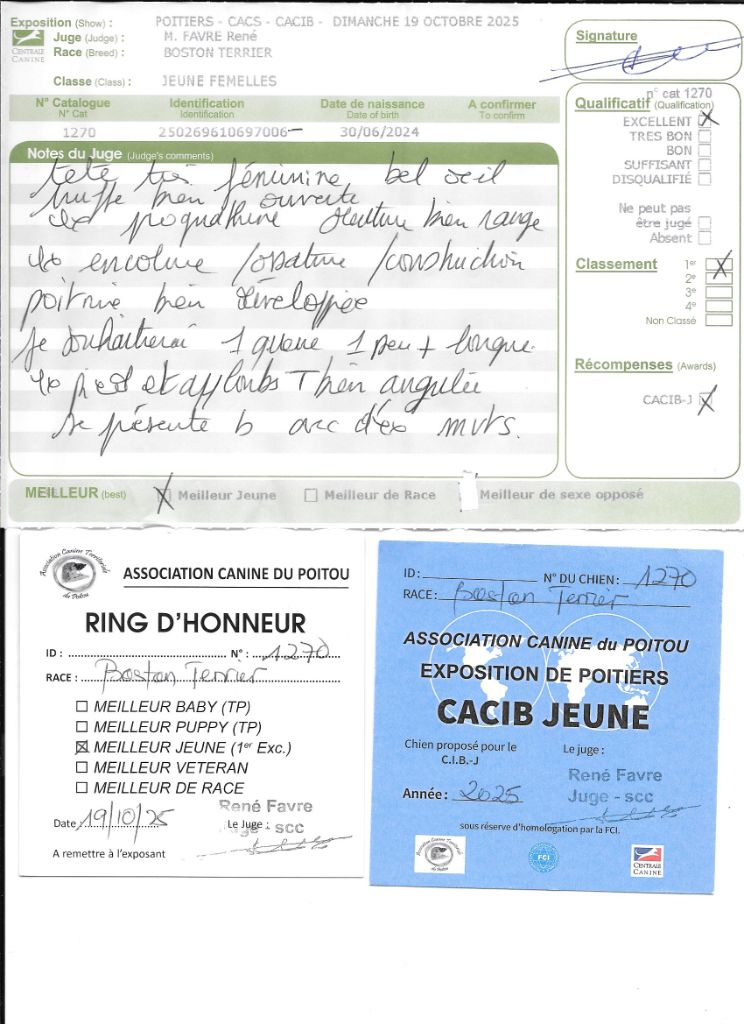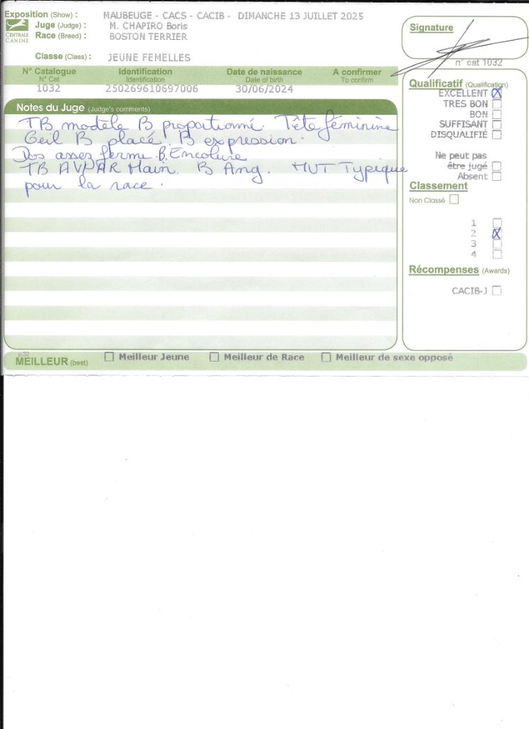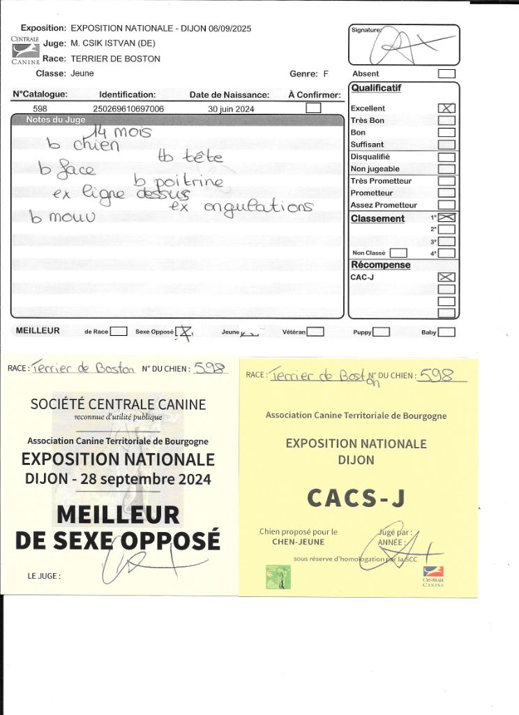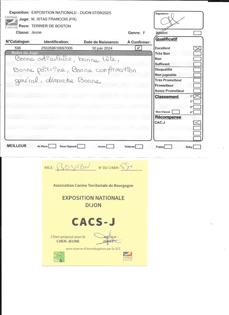 - 1° EXCELLENT CACIBjeune Meilleur jeune , 3° jeune groupe 9