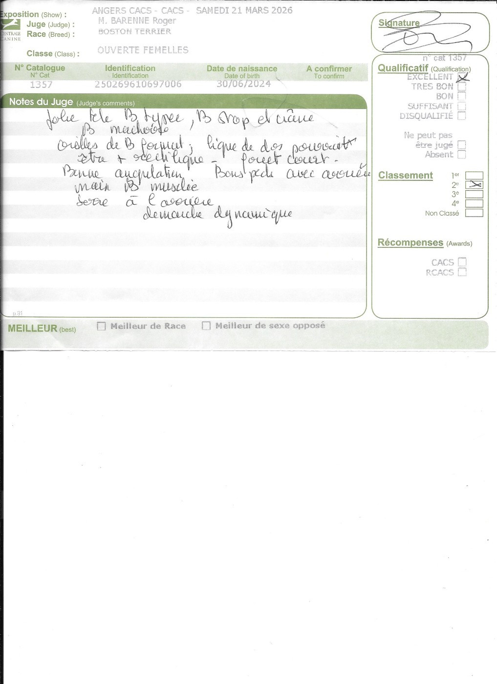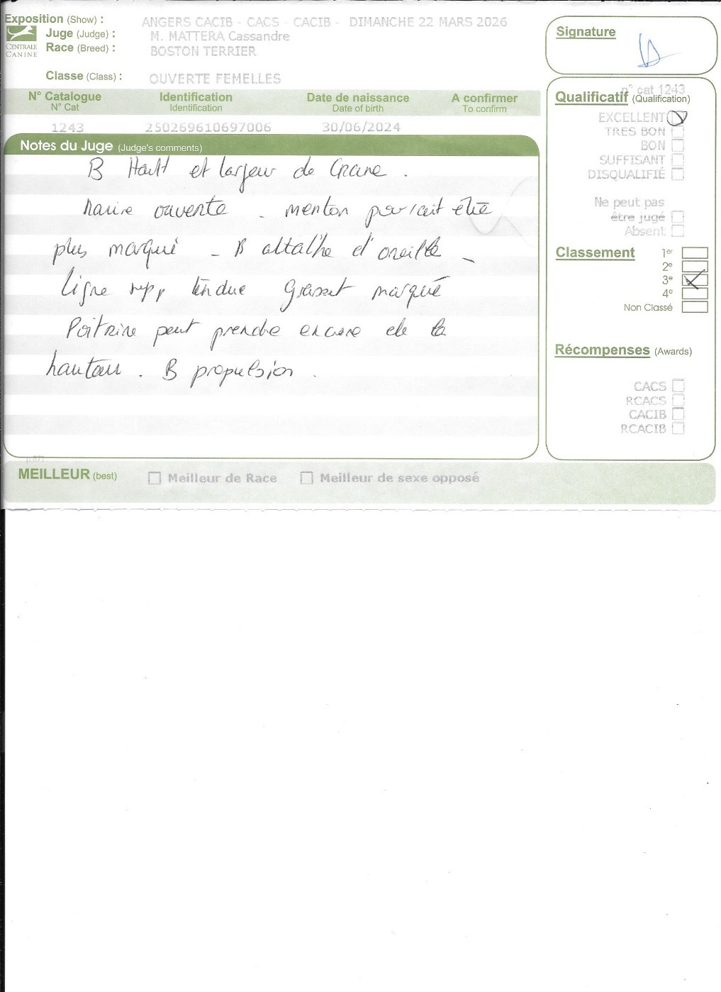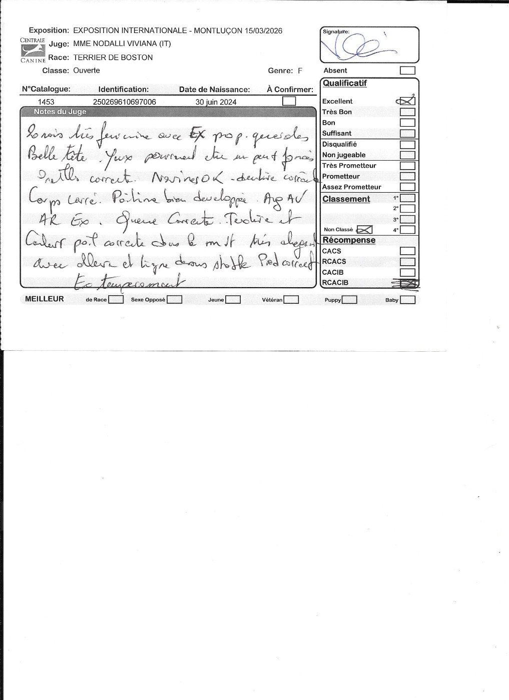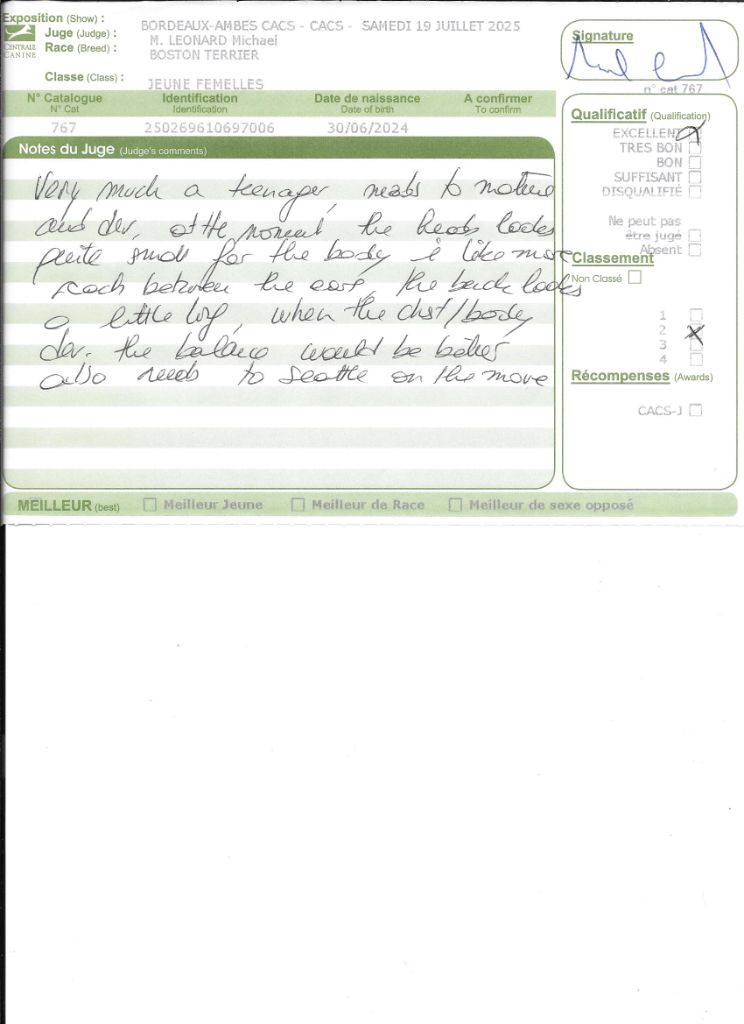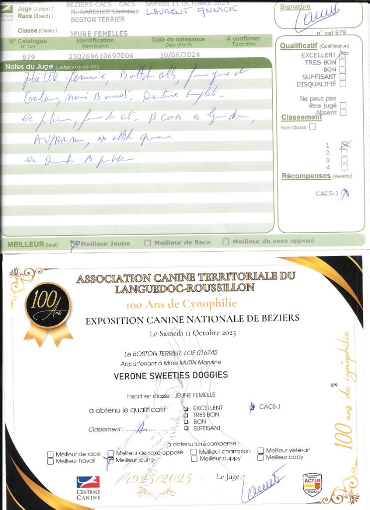 - 1° EXCELLENT CACIBjeune Meilleur jeune , 3° jeune groupe 9