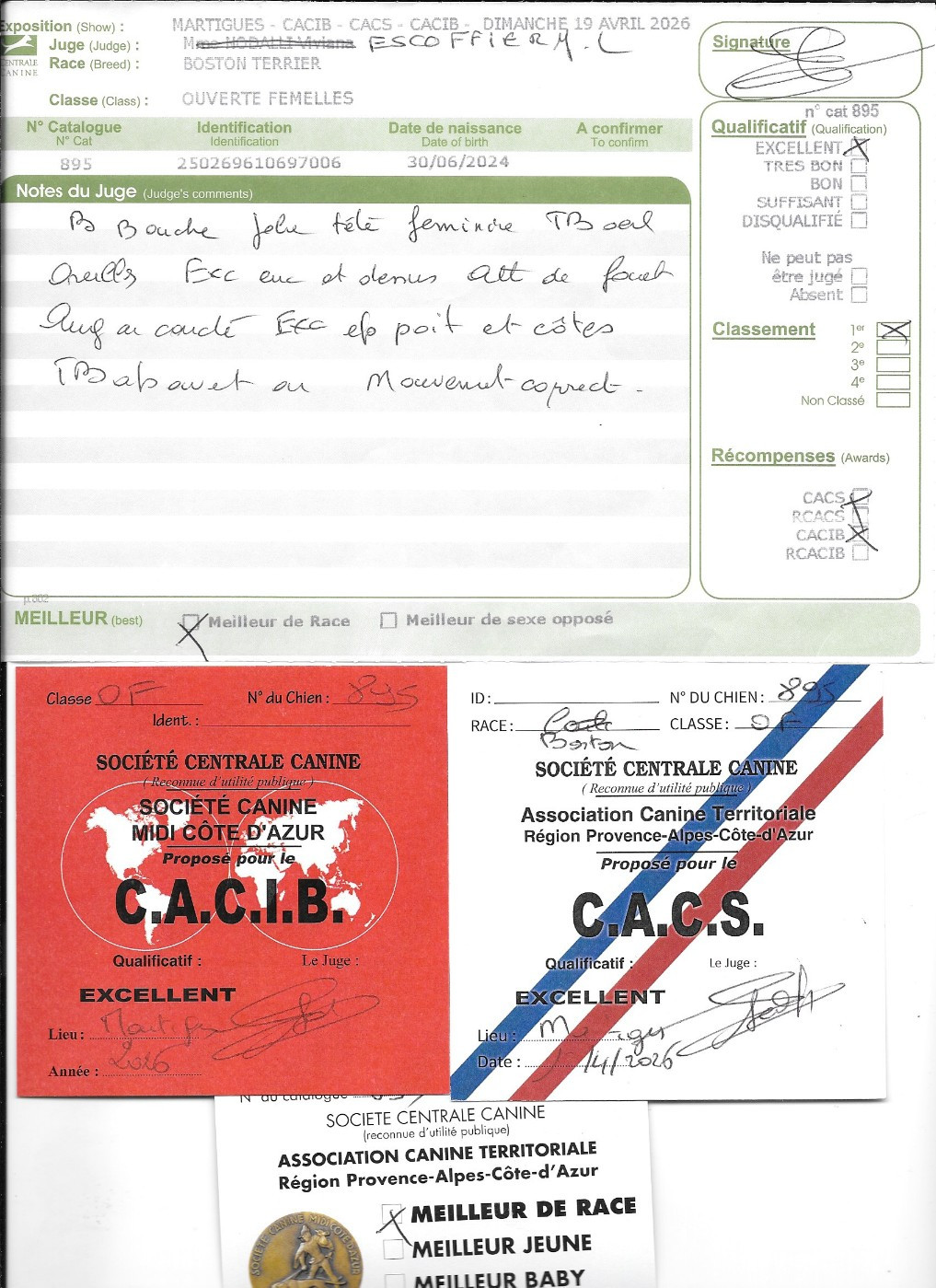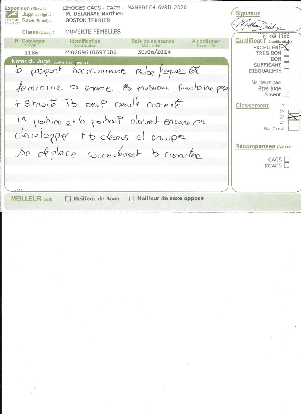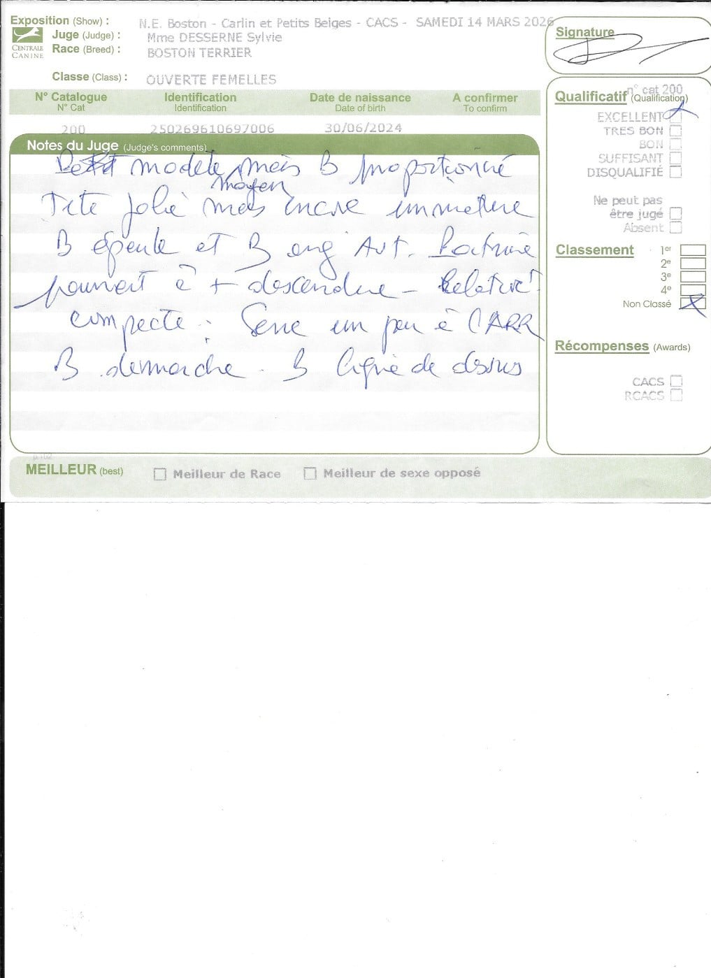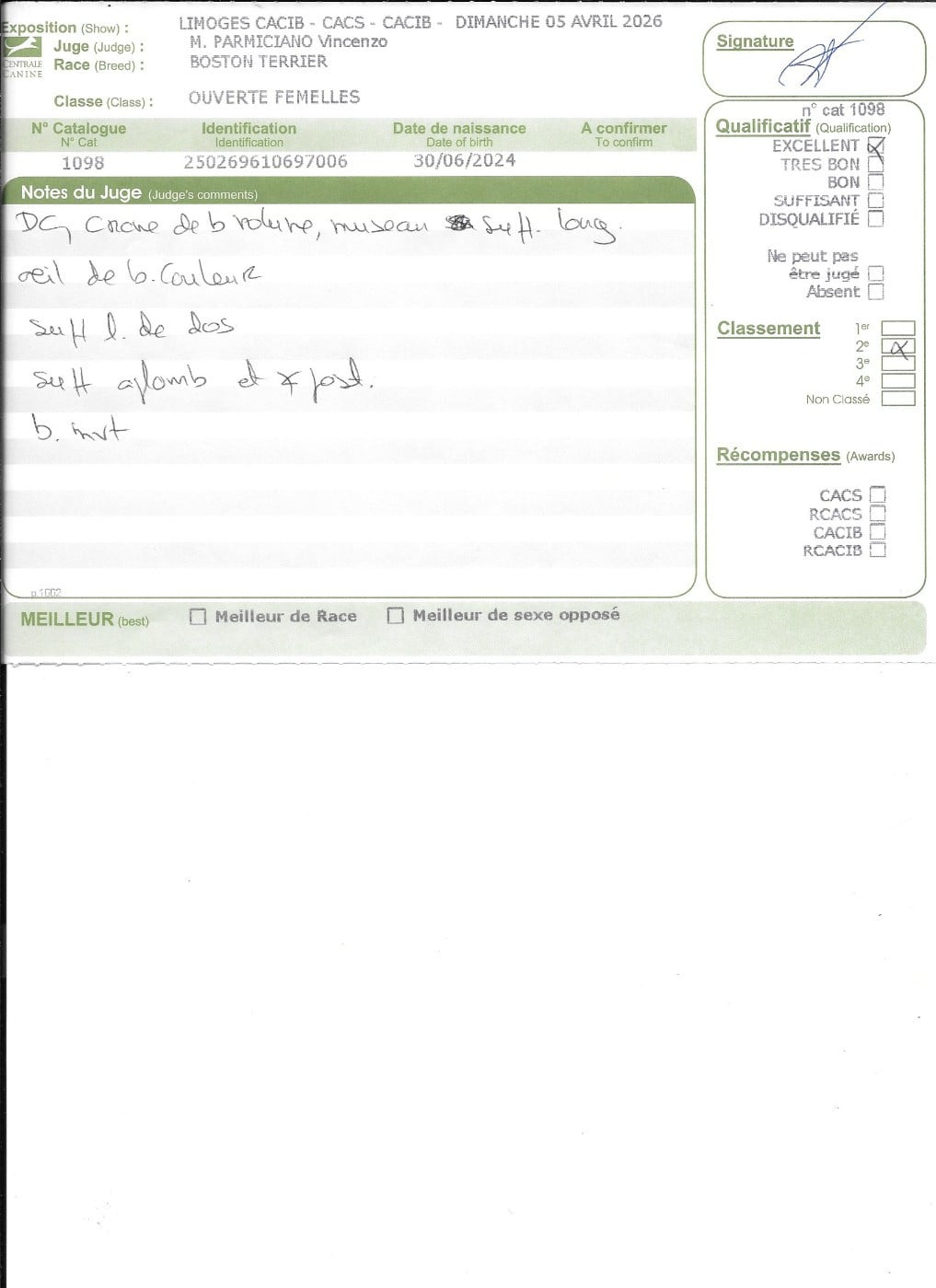- 1° EXCELLENT CACIBjeune Meilleur jeune , 3° jeune groupe 9
