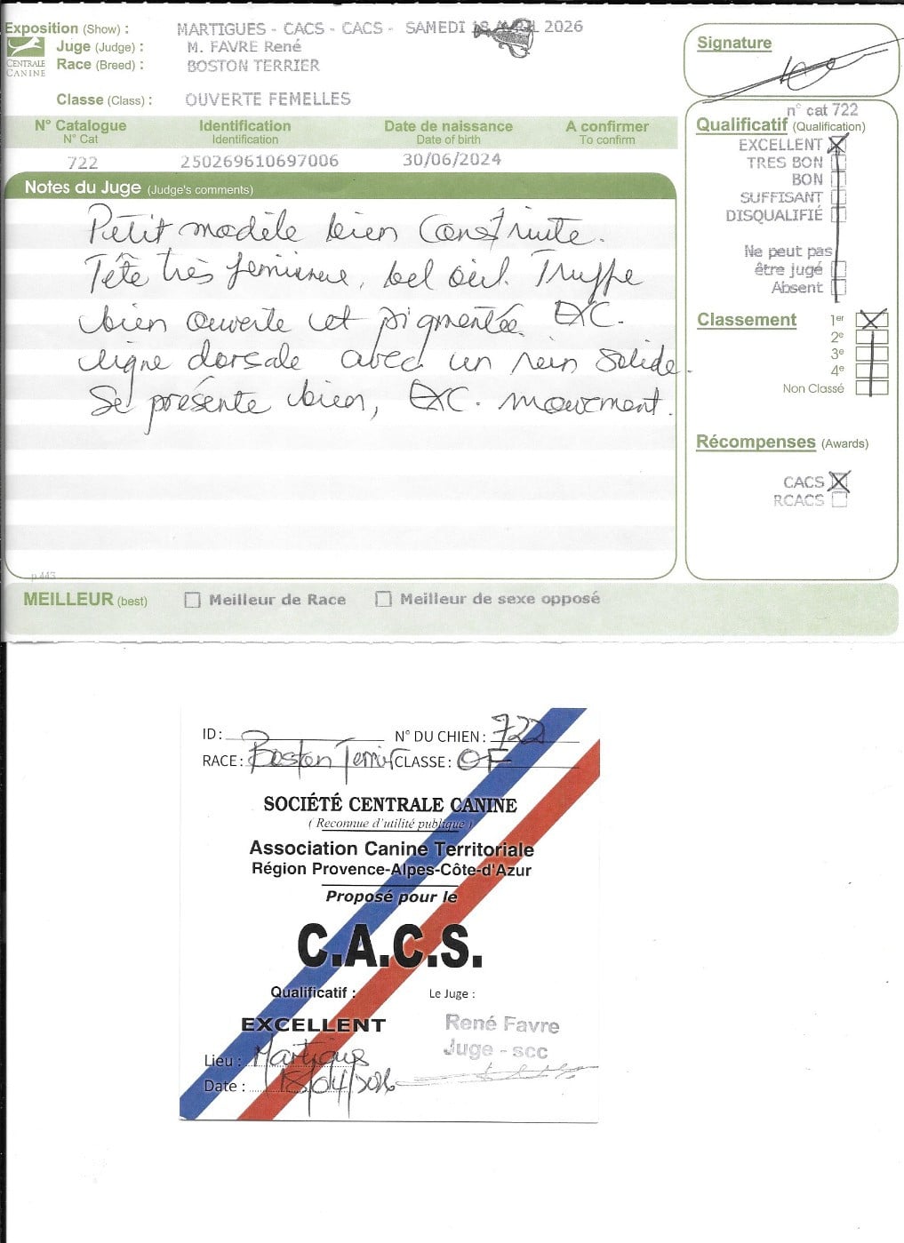 Manifestion : CACS - Juge : Mr ESCOFFIER Jean-Louis (FR)