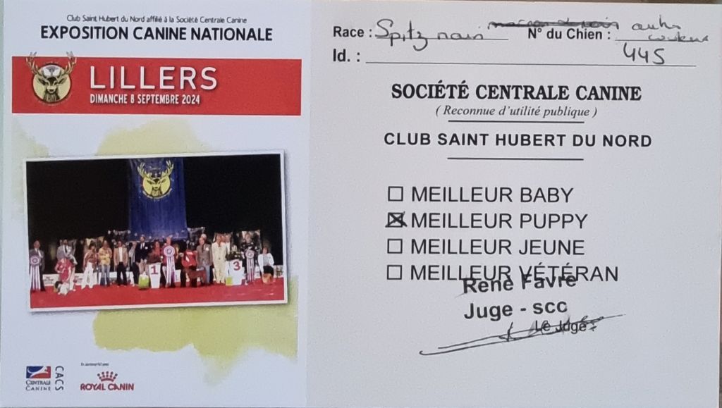 - Très prometteur 1er meilleur puppy classé 3e ring d'honneur