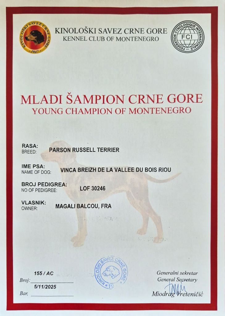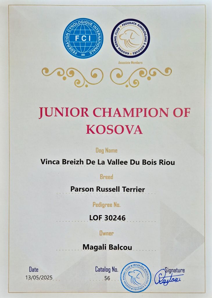 - 1ere excellent CACIB jeune et meilleur jeune et BOB et qualifié crufts 2026