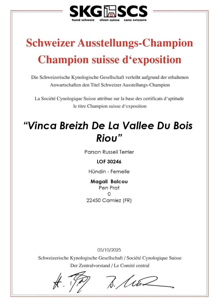 Chien Parson Russell Terrier CH. Vinca breizh De La Vallée Du Bois Riou