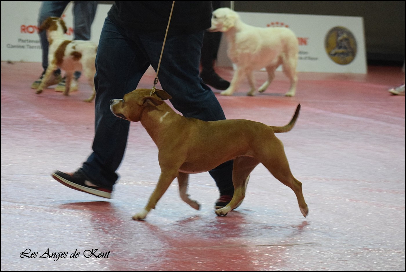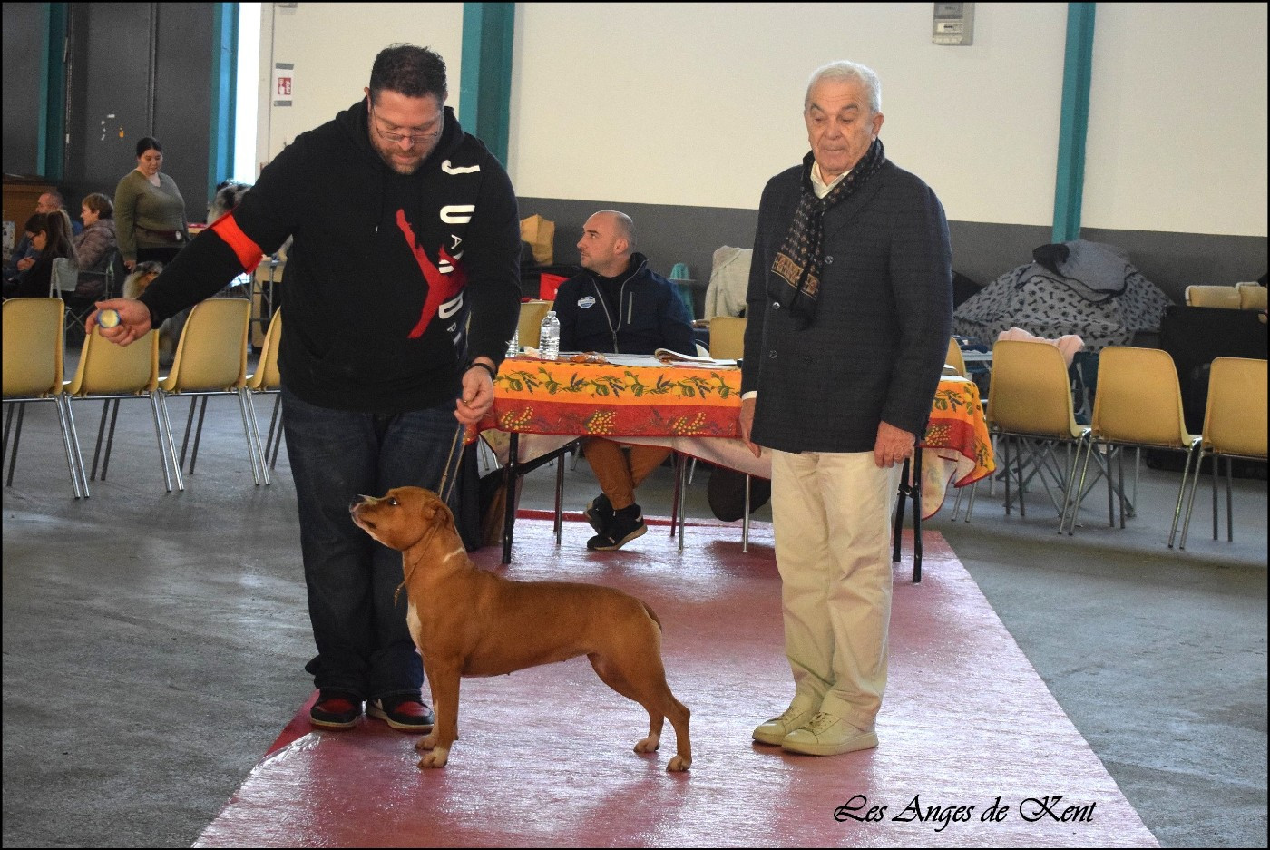 Femelle belle type, exc temperament. Exc epaules et avant main. Exc ligne de dos. Exc mouvement avant, serre un peu à l'arriere.