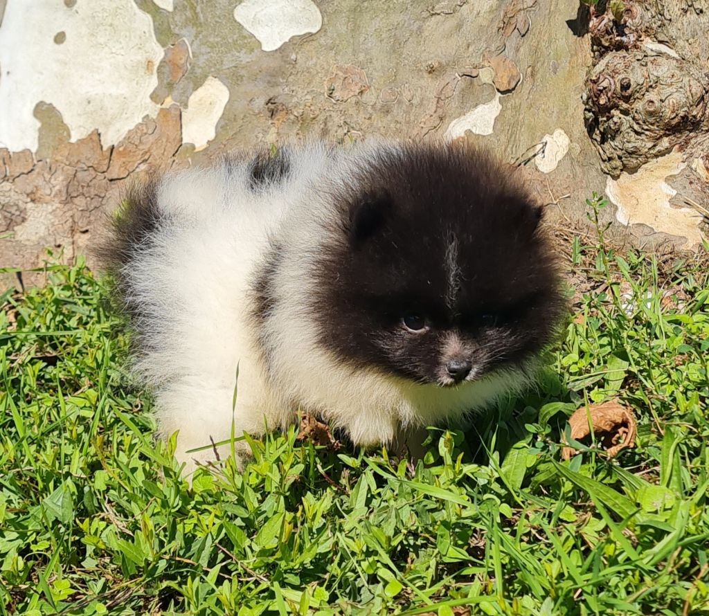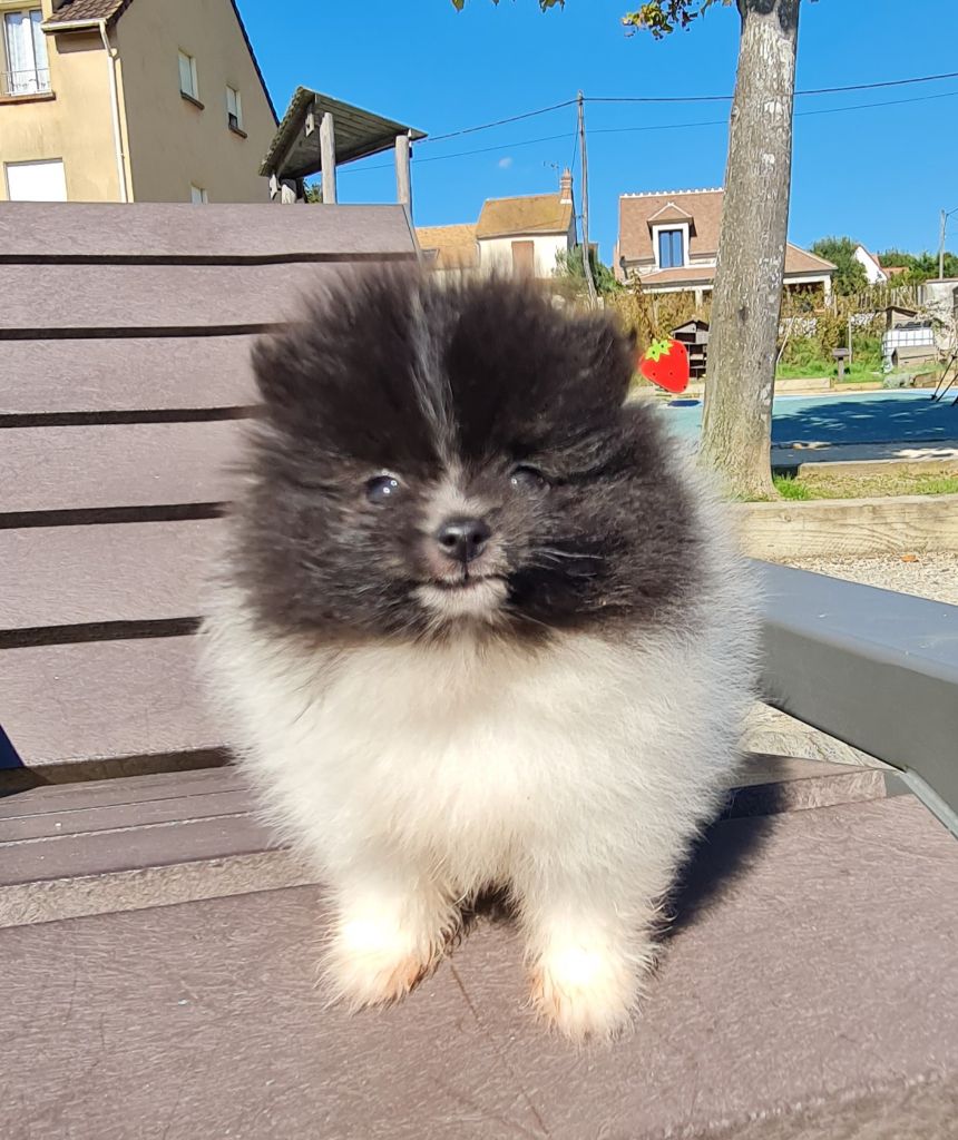 Vespa est un mâle Spitz ultra nain LOF. Robe noir et blanc.