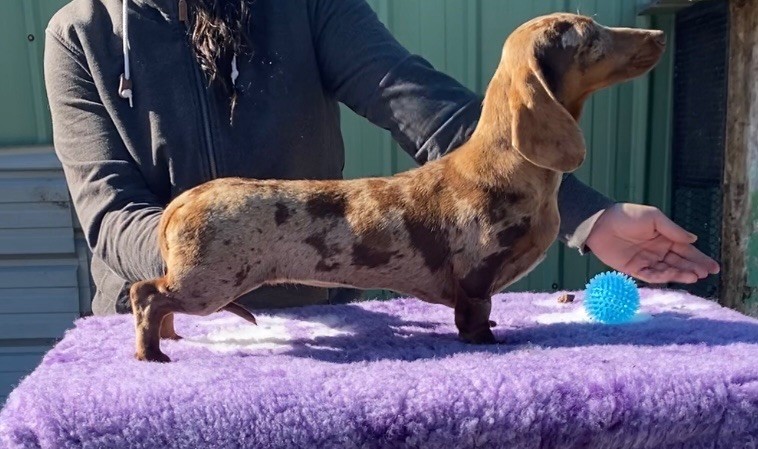 Chien Teckel poil ras Vanilla ice cream chocolate du Buc de la Coume