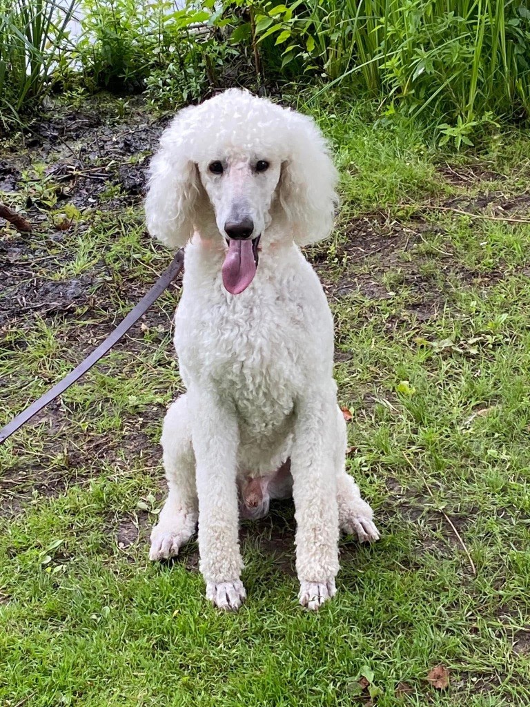 Grand caniche blanc , frisé