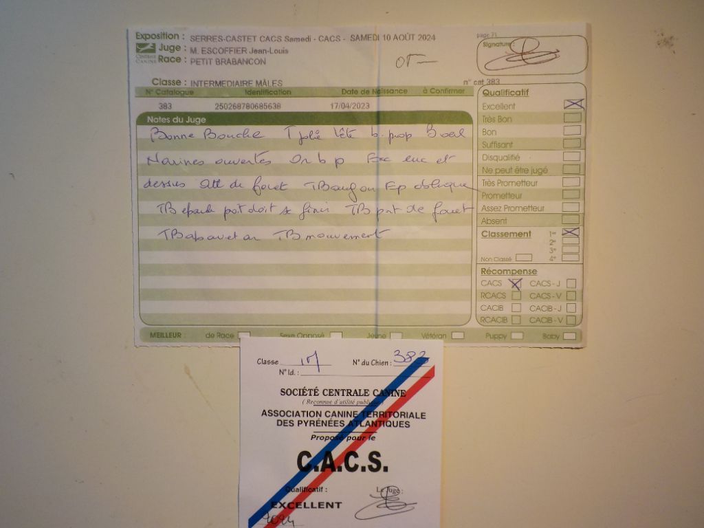 -1er excellent CACS à l'exposition de Serres Castets (64) le 10/08/2024, jugé par Mr Escoffier.