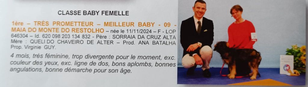 Importée du Portugal, elle est issue d'un mariage intéressant, par son père d'une lignée de chiens de "show" et par sa mère d'une lignée de chiens plus rustiques.