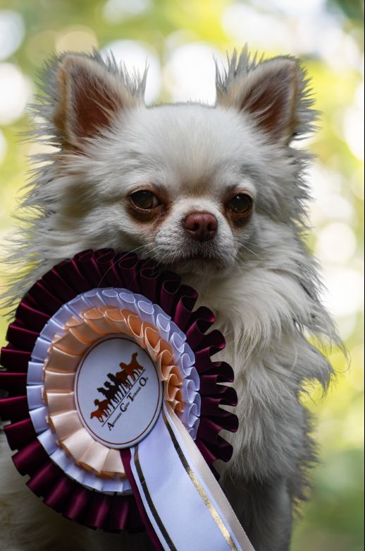 Son père Mirabi Linkoln est un petit fils du multi-champion Frantsuzsky Prince V'stile Oleany, qui a remporté les titres de beauté en Estonie, Lituanie et Russie !